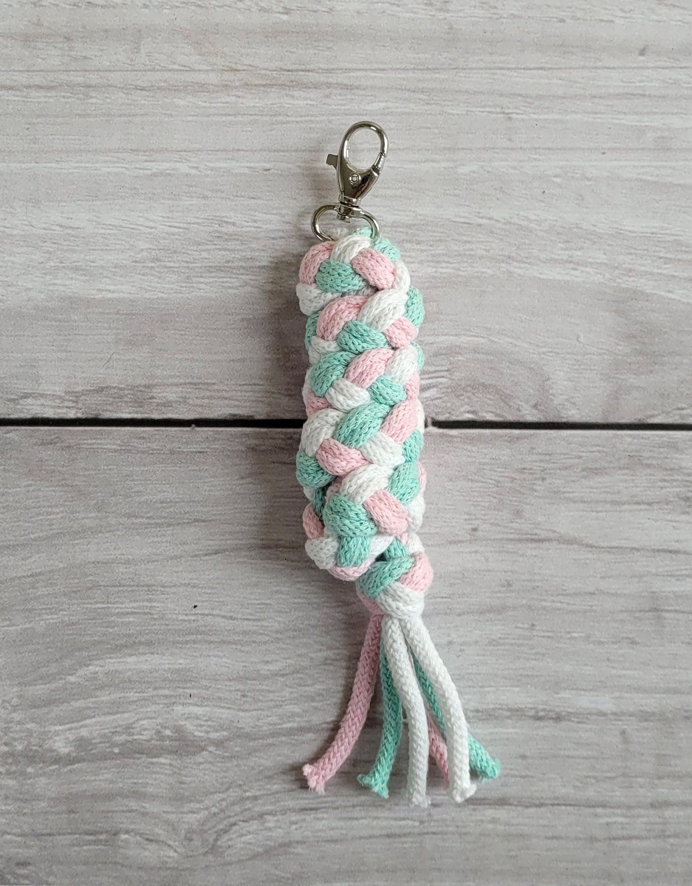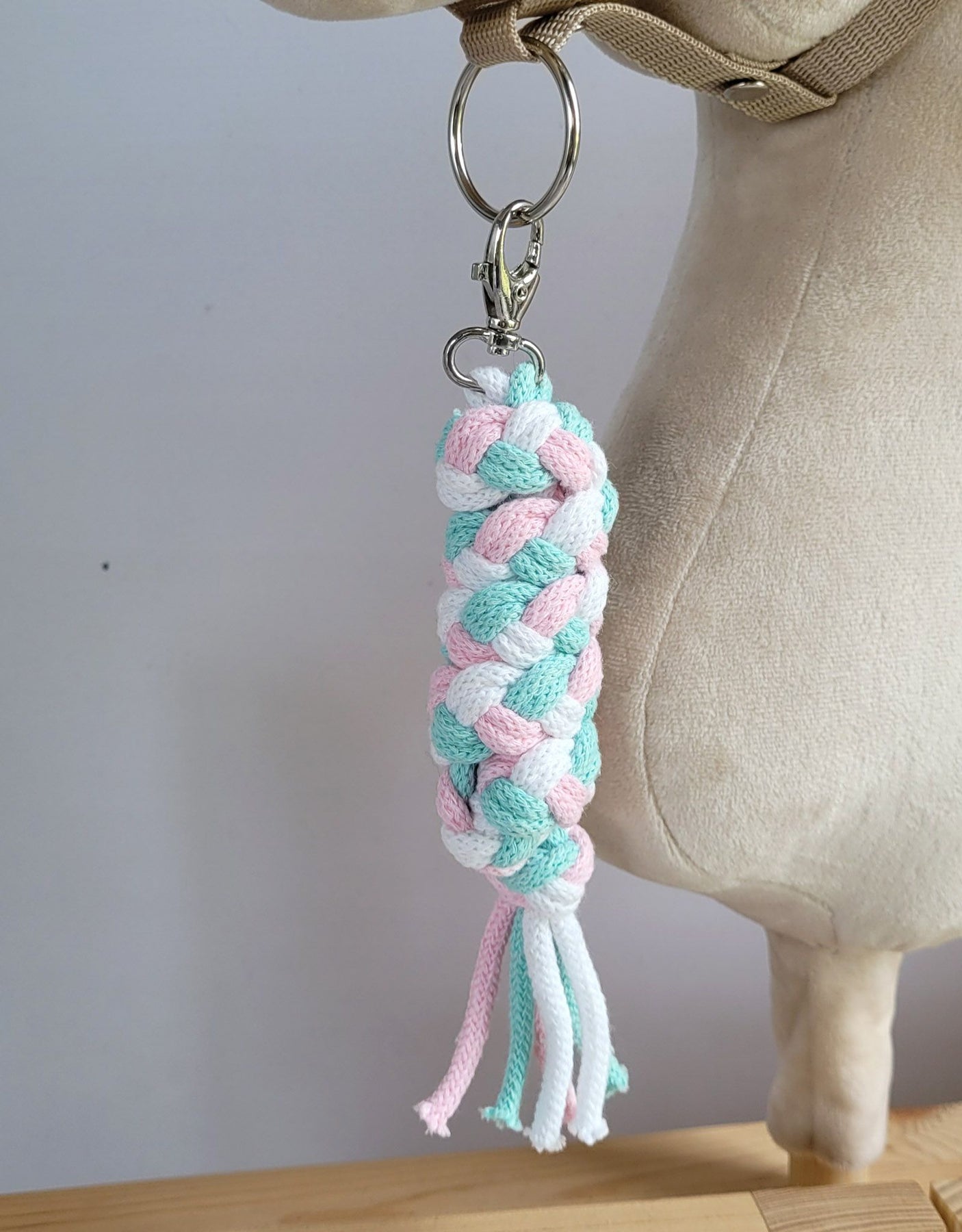Tether voor Hobbypaard gemaakt van dubbel - lichtroze/mint/wit