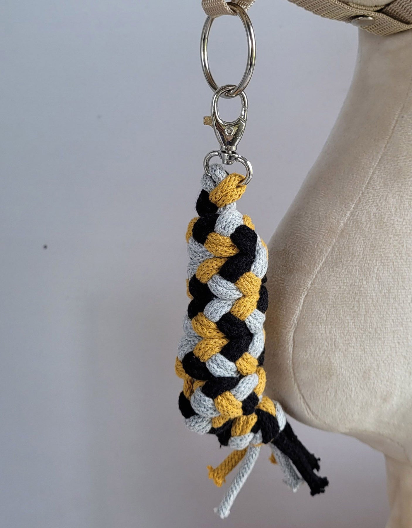 Tether voor Hobbypaard gemaakt van dubbel - mosterd/grijs/zwart
