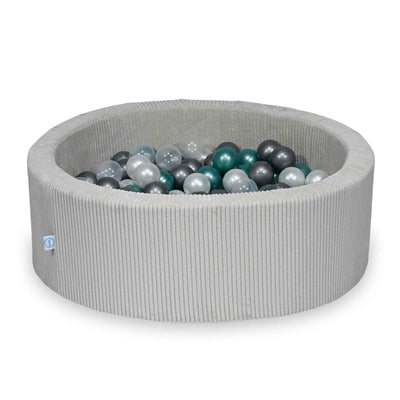Ball Pit 90x30 Corduroy Grey with balls 200 pcs: transparent, pearl, silver, metallic turquoise