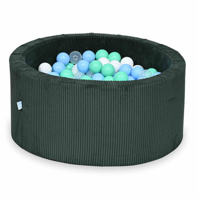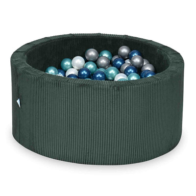 Ball Pit 90x40 Corduroy Green with balls 300 pcs: pearl, silver, metallic turquoise, metallic blue