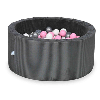 Ball Pit 90x40 Corduroy Graphite with balls 300 pcs: transparent, pearl, metallic graphite