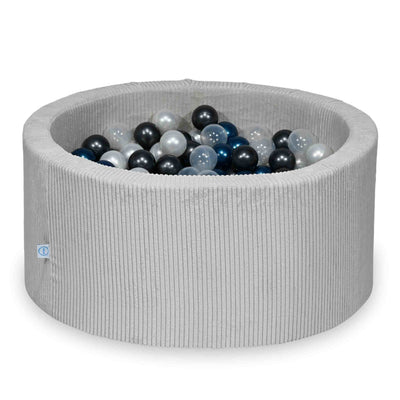 Ball Pit 90x40 Corduroy Grey with balls 300 pcs: transparent, pearl, metallic graphite, matallic blue