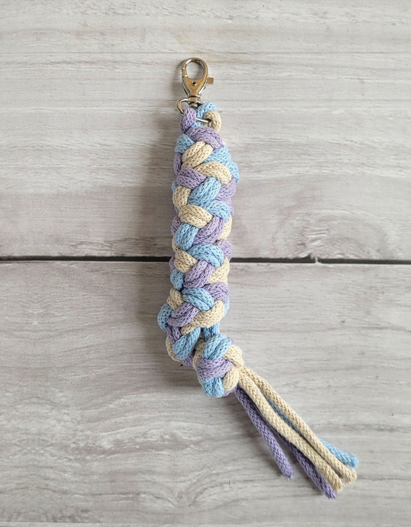 Tether voor Hobbypaard gemaakt van dubbeltouwkoord - paars/blauw/lichtbeige