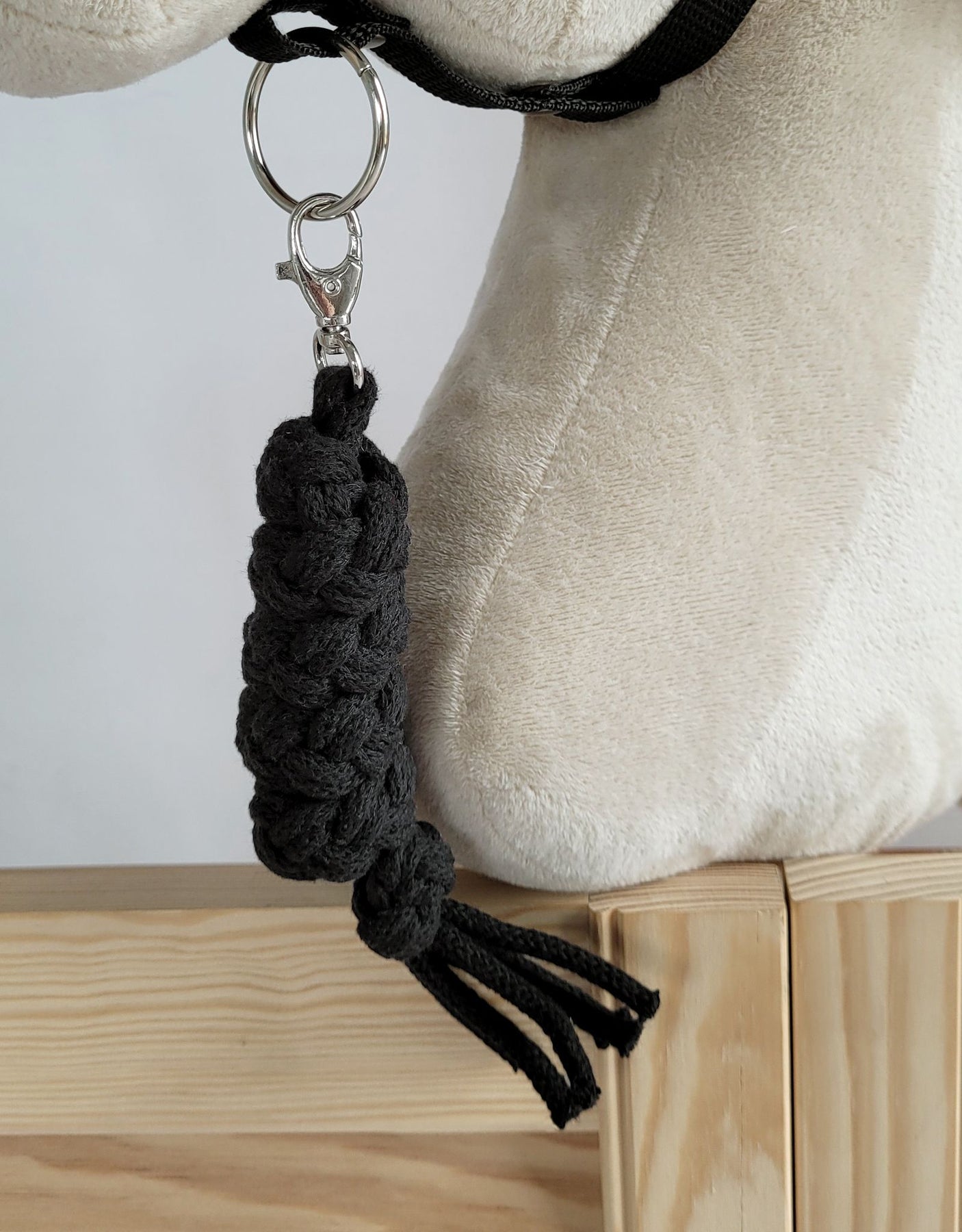 Hoge kwaliteit, handgemaakte zachte ketting voor hobbypaard. De ketting is zorgvuldig gevlochten van sterk, dubbel gedraaid katoenen koord met een diameter van 5 mm. De tether is comfortabel in gebruik, veroorzaakt geen schaafwonden en is niet-allergeen. De karabijnhaak is gemaakt van zilverkleurig metaal.