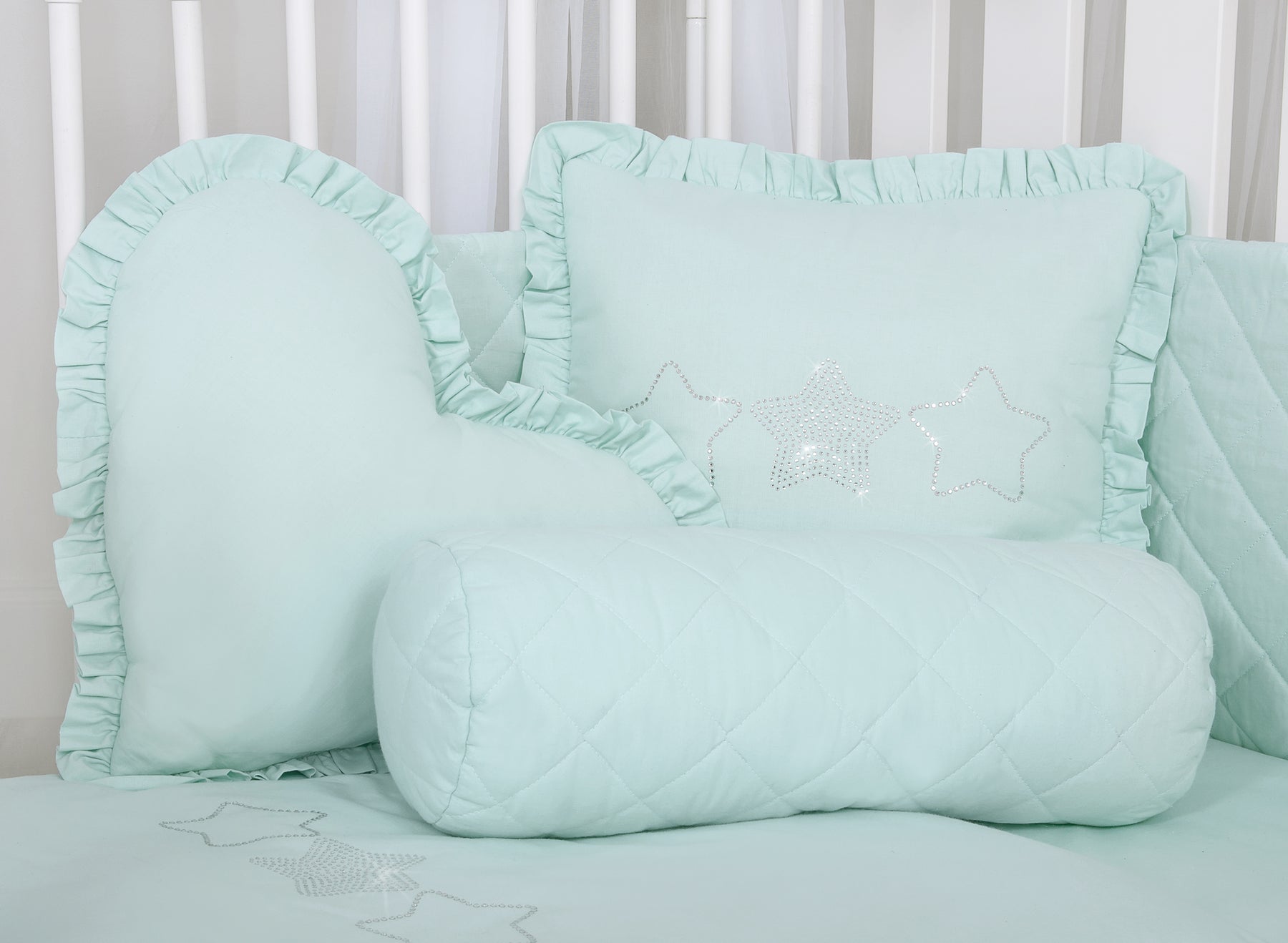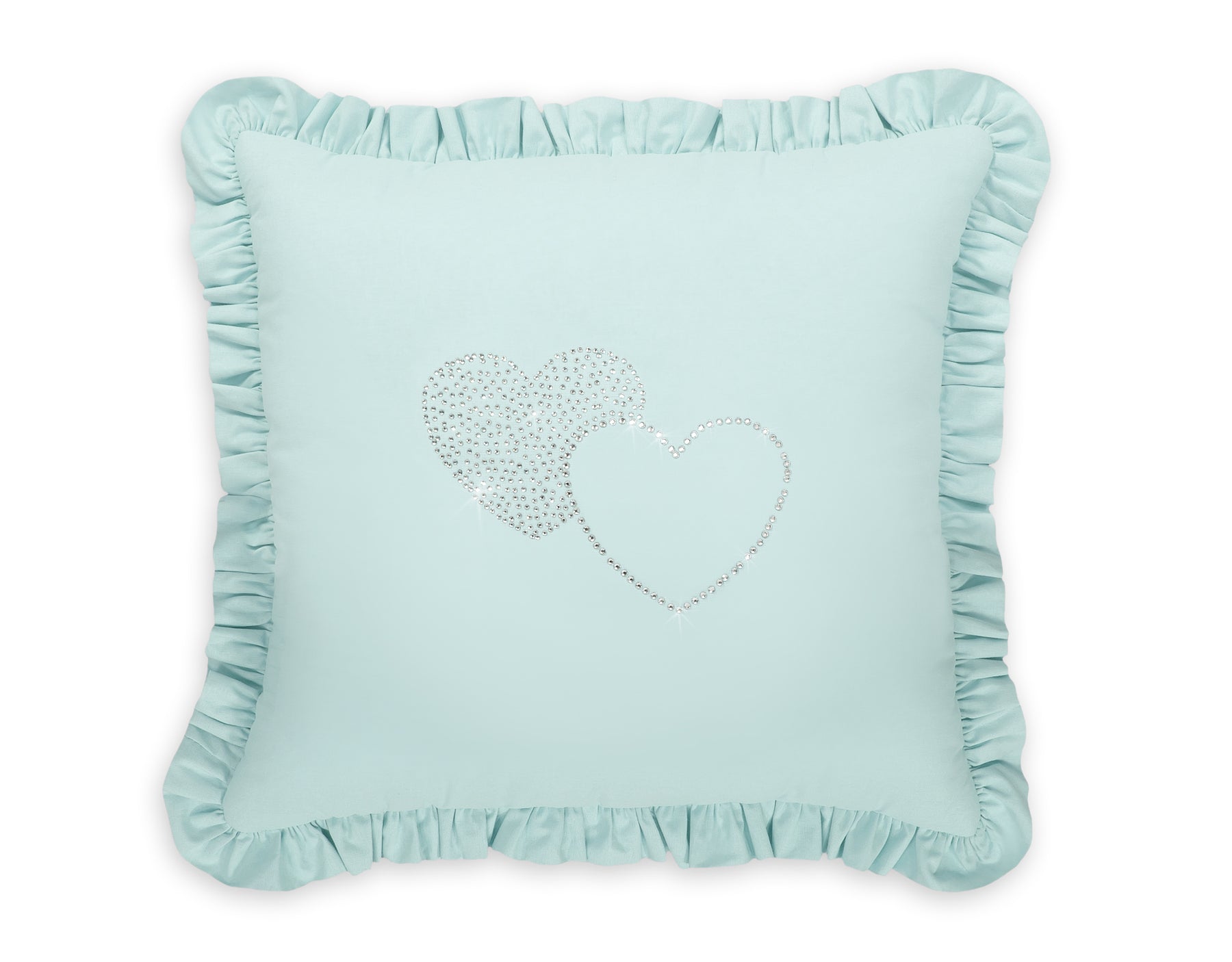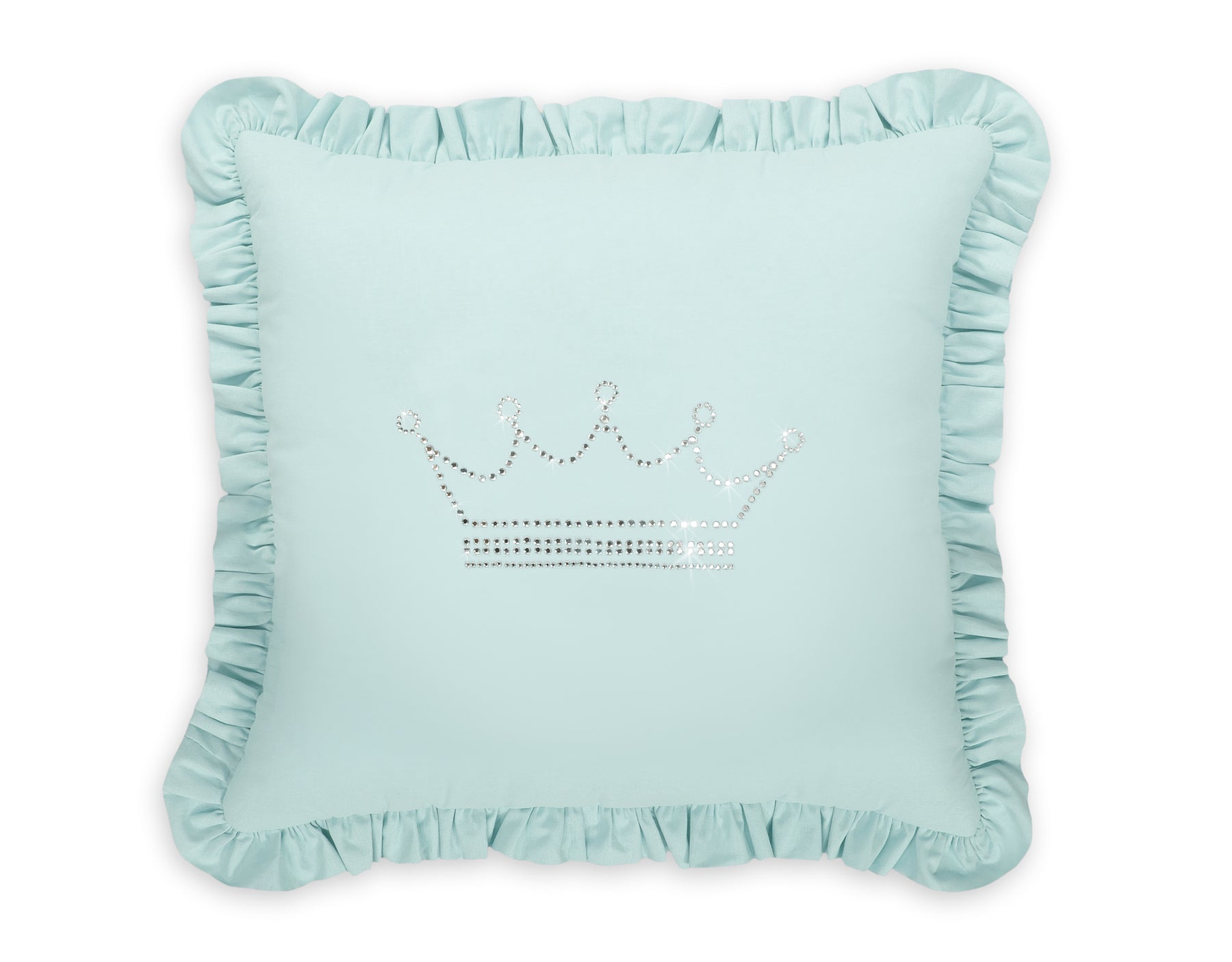 Elegant kussen met applicatie. Versierd met een franje. De kussensloop valt op door een glinsterende applicatie van fijne zirkonen op gladde katoenen stof. Buitenstof van 100% katoen (niet demontabel). De vulling in het kussen is Eco Fillball-geteste siliconenballen - "kunstmatige pluisjes" voor kussens - vulling zorgt voor een goede afwikkeling van de baby en luchtcirculatie. Het zal uitstekend werken als decoratie van de kinderkamer. Het kussen is een geheel, zonder afneembare kussensloop. Het is een prachtige set met ons beddengoed.