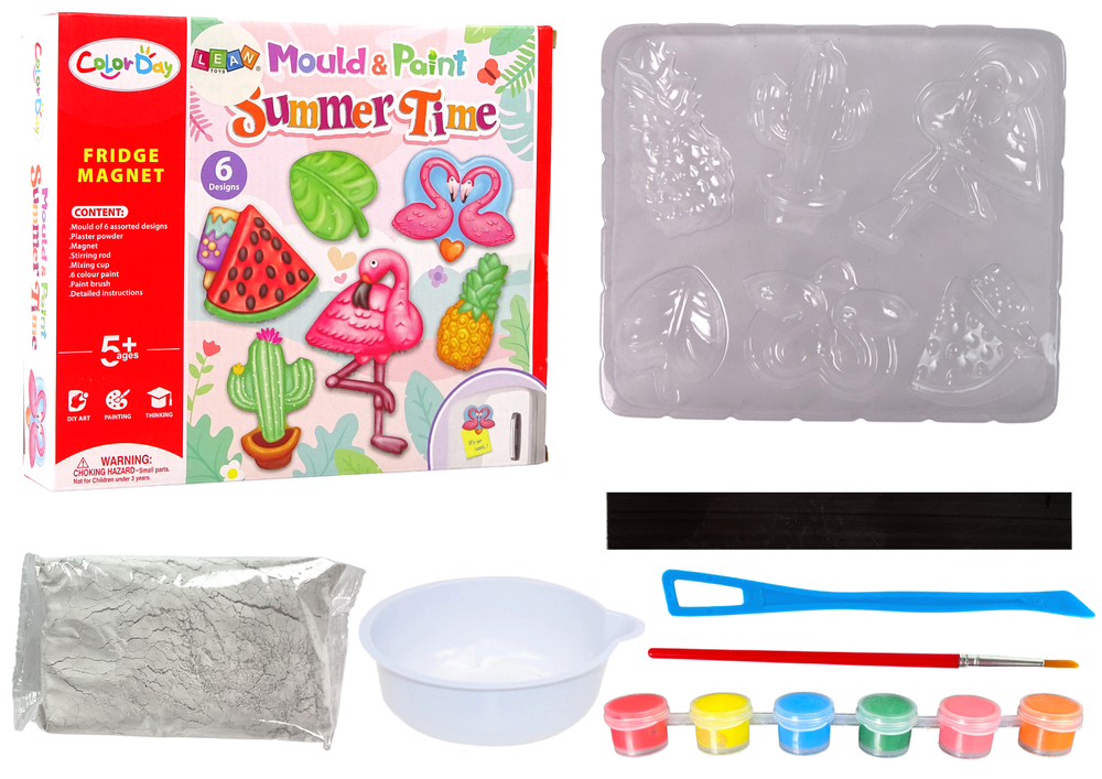 Breng kleur en creativiteit in je huis met het DIY-schilderpakket Vakantie Flamingo Watermeloen Gipsmagneten. Dit pakket bevat alles wat je nodig hebt om unieke gipsmagneten te maken in de vorm van vrolijke flamingo's en sappige watermeloenen. Perfect voor zowel jong als oud, dit schilderproject stimuleert de fantasie en biedt urenlang plezier. De hoogwaardige gipsen vormen zijn gemakkelijk te schilderen met de meegeleverde verf en penseel. Tover je koelkast om tot een kleurrijk kunstwerk en voeg een speelse touch toe aan je interieur. Ideaal als activiteit voor een regenachtige dag of als creatief cadeau voor vrienden en familie. Laat je creativiteit de vrije loop en geniet van het maken van deze unieke magneten!