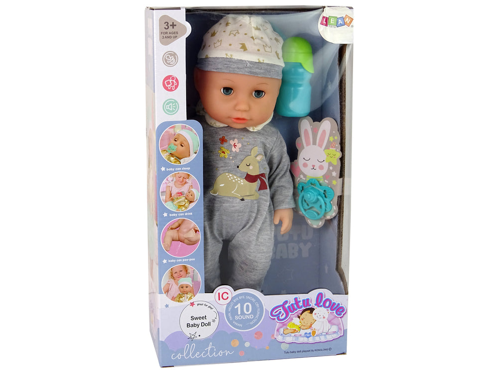 Babypop Pee Sounds Puppet Fles Grijze Pyjama