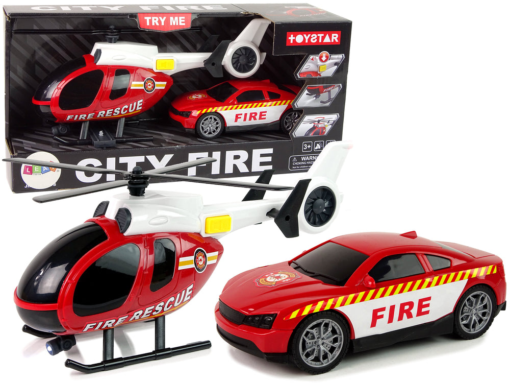 Ontdek de Helikopter Auto Brandweer Voertuig Set Geluid, een spannende speelset voor de kleine brandweermannen en vrouwen. Deze set bevat een realistische helikopter en een brandweerauto, beide uitgerust met authentieke geluidseffecten die het spellevensecht maken. De helikopter is perfect voor luchtsteun, terwijl de brandweerauto ideaal is voor snelle interventies op de grond. Gemaakt van duurzaam materiaal, biedt deze set eindeloze uren speelplezier en stimuleert de creativiteit en fantasie van kinderen. Een must-have voor elke jonge held die avonturen wil beleven in de wereld van brandbestrijding. Geschikt voor kinderen vanaf 3 jaar.