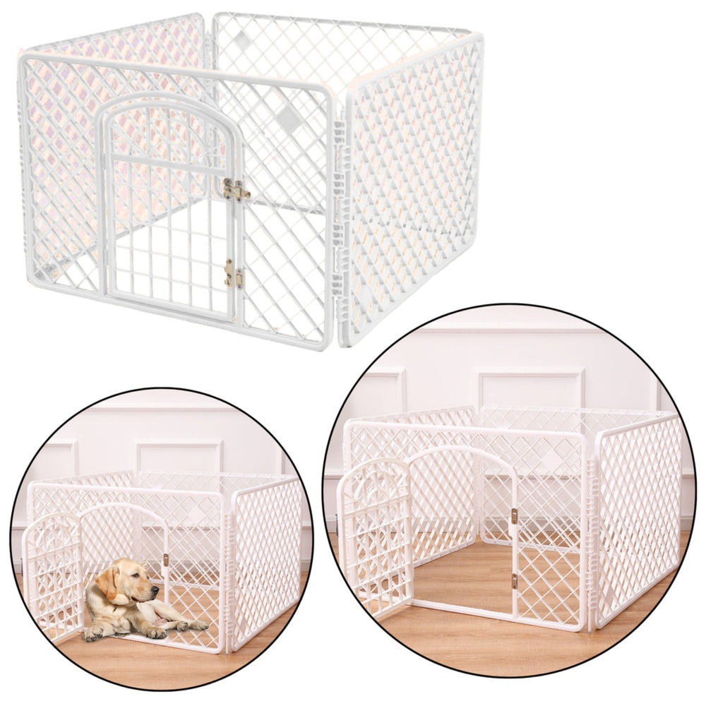 Hondenkooi Vouwdeur Beveiliging 90 cm x 60 cm x 60 cm is de ideale oplossing voor het veilig houden van uw huisdier. Deze opvouwbare hondenpen heeft een afmeting van 90 x 90 x 60 cm en is voorzien van veilige, afgeronde hoeken. De hondenkooi is eenvoudig te monteren en op te bergen, waardoor hij praktisch in gebruik is. Gemaakt van duurzaam ABS-materiaal kan de pen zowel binnenshuis als in de tuin worden gebruikt. De opening van 36 x 46 cm met dubbele beveiliging biedt extra veiligheid voor uw huisdier. Perfect voor wanneer u een veilige ruimte voor uw trouwe vriend wilt cre�ren.