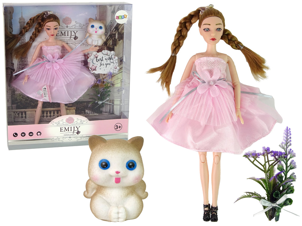 Ontdek de Babypop Emily Pigtails Kat Bloemen, een betoverende pop met lange vlechten en een schattige jurk versierd met ornamenten. Deze pop is ontworpen met zwarte hakken en beweegbare ledematen, waardoor ze perfect is voor spelletjes vol creativiteit. En om het avontuur compleet te maken, wordt ze geleverd met een schattige kitten en paarse bloemen. Laat je fantasie de vrije loop en geniet van eindeloos speelplezier met deze charmante pop!
