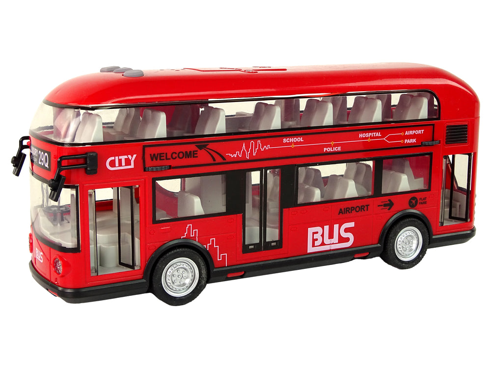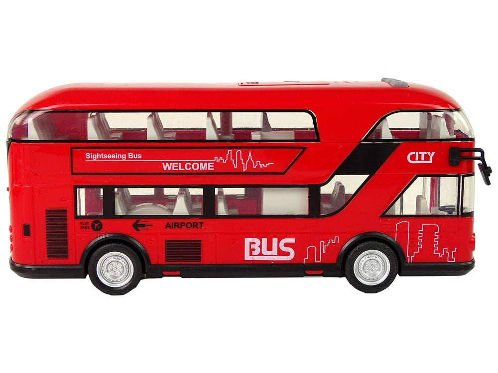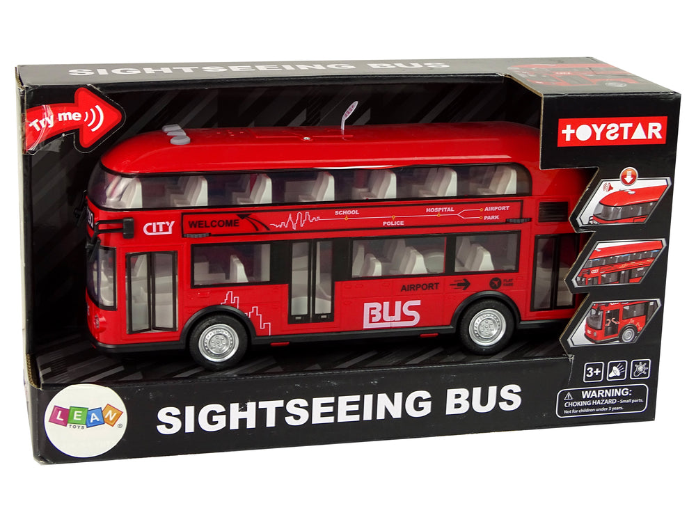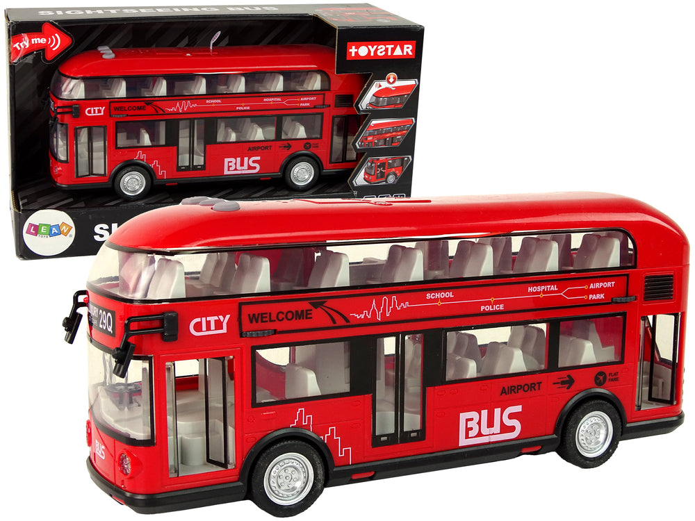 Rode dubbeldekkerbus met frictieaandrijving. Deze geweldige rode speelgoedbus is perfect voor kleine liefhebbers van het openbaar vervoer. De dubbeldekkerontwerp geeft de bus een indrukwekkend uiterlijk en voegt extra charme toe. Dankzij de frictieaandrijving kunnen kinderen eenvoudig hun fantasie de vrije loop laten, terwijl ze door de straten van hun speelomgeving rijden. Een ideaal cadeau voor uren speelplezier en avontuur.