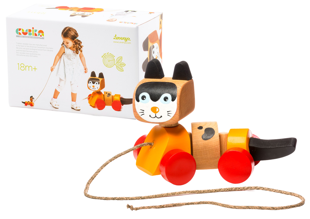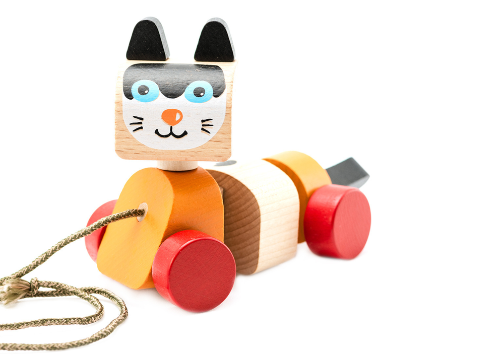 Laat je creativiteit de vrije loop met deze schattige houten kat aan een trekkoord! Dit prachtige speelgoed is perfect voor jonge kinderen die hun motoriek en co�rdinatie willen ontwikkelen. De kleurrijke houten kat is met veel zorg en aandacht voor detail vervaardigd, en zal zeker de aandacht trekken van je kleintje. Het trekkoord is stevig en duurzaam, zodat je kind de kat soepel kan voorttrekken. Ideaal voor zowel binnen- als buitenspeelgelegenheden. Stimuleer fantasie en spelenderwijs leren met deze vrolijke houten kat!