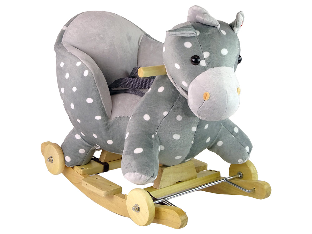 Ontdek de magie van het Hobbelpaard Kleine Stippen! Dit schattige grijze hobbelpaard met witte stippen is 46 cm hoog en speelt vrolijke muziek op 3 R6 AA-batterijen (niet inbegrepen). Het hobbelpaard is voorzien van zachte, veilige materialen en veiligheidsgordels voor extra bescherming. Met afmetingen van 46 cm x 60 cm x 37 cm is het ideaal voor kleine avonturiers. Dit hobbelpaard stimuleert de ontwikkeling van vaardigheden en is het perfecte cadeau voor jonge ontdekkingsreizigers!