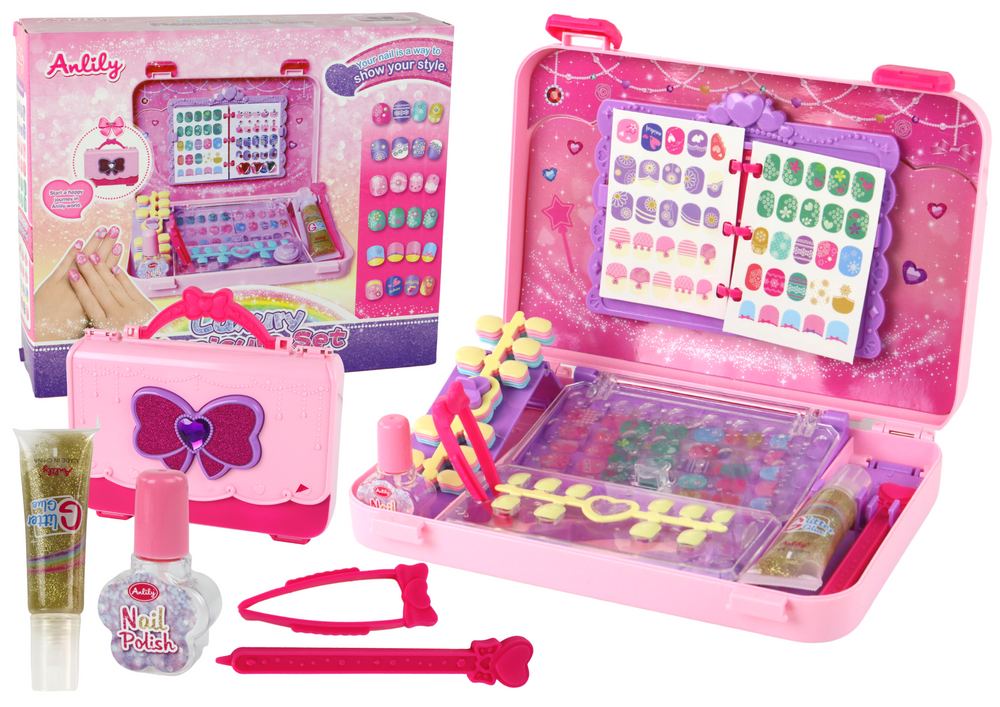 Maak kennis met de schattige roze koffer vol nagelaccessoires. Deze unieke koffer is versierd met een paars strikje en een glinsterend kristalhart, en biedt alles wat je nodig hebt voor een betoverende manicure. Met nagelstickers en -tips kun je eenvoudig prachtige ontwerpen cre�ren. Perfect voor zowel beginners als ervaren gebruikers die hun nagels willen laten stralen. Dit is de ideale accessoire voor elke nagelliefhebber!