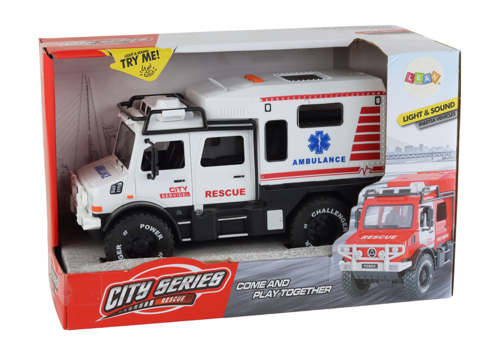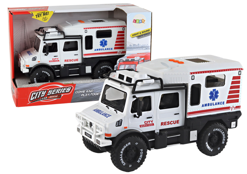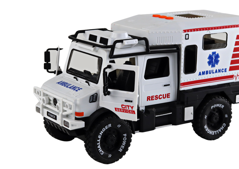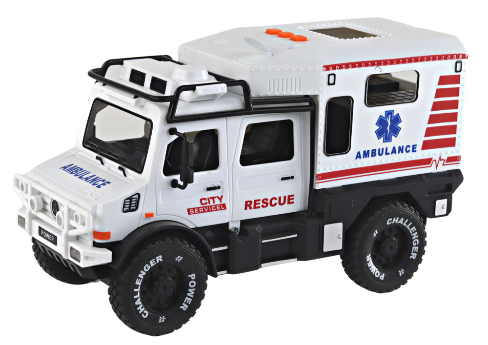 Ontdek de Offroad Voertuig Ambulance in schaal 1:14, een spannend model voor de echte avonturier! Dit voertuig is uitgerust met een handige pull-back aandrijving, waardoor je het gemakkelijk kunt voorttrekken en snel kunt laten rijden. De deuren van de ambulance openen voor een realistische speelervaring. Met rubberen wielen met profiel blijft deze ambulance stevig op de grond liggen, perfect voor offroad avonturen. Geniet van de LED-licht effecten en alarmgeluiden die zorgen voor extra spanning tijdens het spelen. Dit model is voorzien van vele details die garant staan voor urenlang plezier. Ideaal voor kinderen die houden van actie en avontuur!