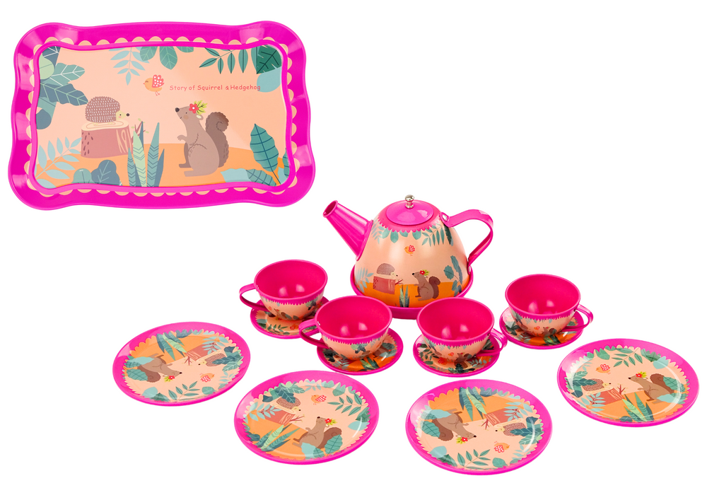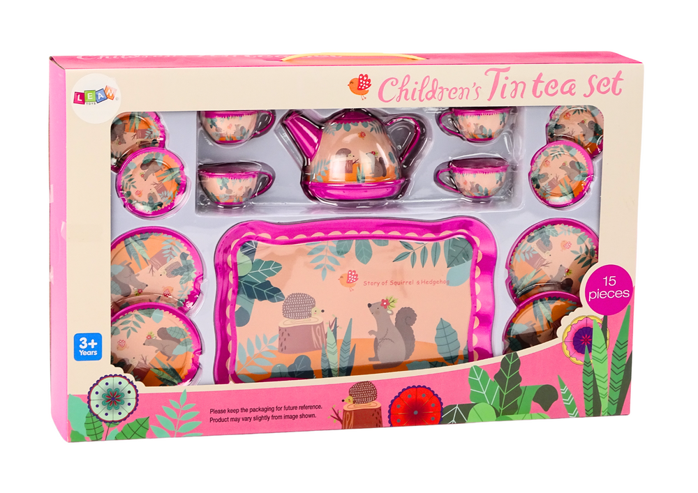 Koffie Theeservies Kopjes Waterkoker Dienblad Roze Cafe 15 st. is een schattige en kleurrijke theeservies set die kinderen de kans biedt om de rol van gastheer of gastvrouw tijdens een koffiefeestje te spelen. De set bevat een elegant dienblad, een theepot, vier kopjes, vier schotels en vier grote dessertborden. Laat de vriendjes en vriendinnetjes genieten van een gezellig samenzijn met deze complete set, perfect voor creatief spel en het ontwikkelen van sociale vaardigheden. Deze set is een geweldige aanvulling op elk speelkeuken en stimuleert de verbeelding van uw kind.