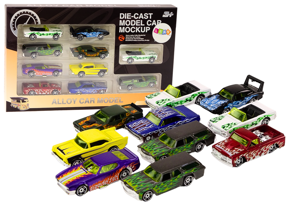 Set Autoveerveren 1:64 Metaal 10 st Deze collectie van tien 1:64 schaal veerspanners is voorzien van dynamische vlammen aan de zijkanten. De stevige metalen constructie garandeert duurzaamheid. Dit speeltje stimuleert creatief spel en ontwikkelt de verbeeldingskracht. Een perfect cadeau voor jonge autoliefhebbers.
