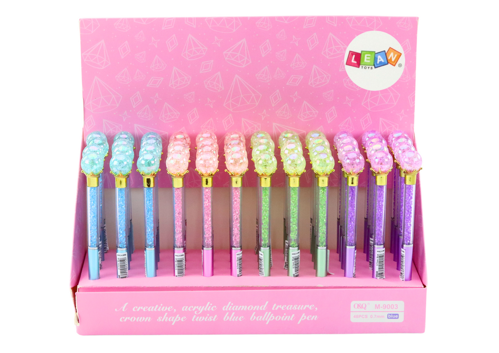 De Diamond Balpen Diamonds Blue Navulling 0,7 mm is een elegante pen met een diamanten bal aan het uiteinde en een transparante behuizing gevuld met sprankelende diamanten. Deze pen combineert stijl met functionaliteit en is perfect voor dagelijks gebruik dankzij de blauwe inkt. Het luxe ontwerp voegt een vleugje elegantie toe aan elke noot.
