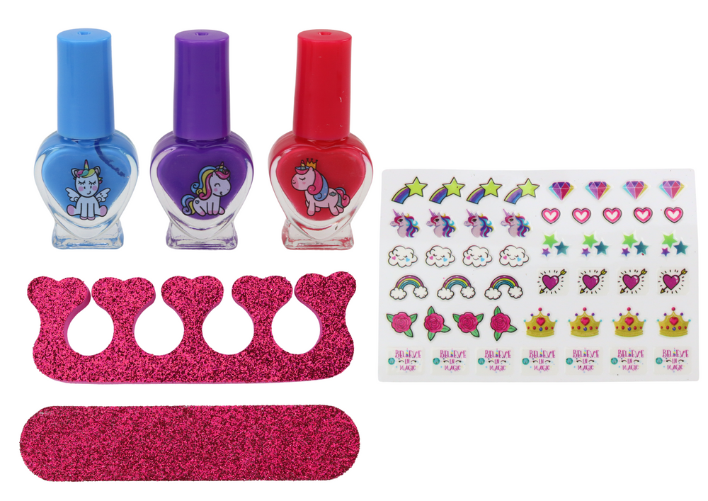 Ontdek de betoverende Beauty Make-up Set Cosmetica in een schattige roze eenhoorn etui. Deze unieke set bevat alles wat je nodig hebt om je creativiteit de vrije loop te laten. De set omvat 3 nagellakken, een set make-upkwasten, 2 lipsticks, een extra kwast, een parfumflesje, blush, oogschaduw, lipgloss en diverse accessoires. Met afmetingen van 20 cm x 15 cm x 7 cm is deze stijlvolle etui perfect voor zowel thuis als onderweg. Laat je fantasie stralen met deze prachtige make-up set!