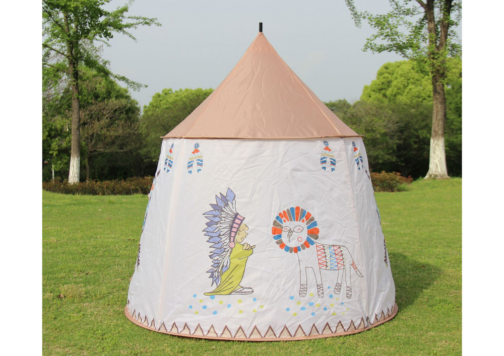 Ontdek de Indiase tipi-tent voor kinderen in zachte beige tinten, perfect voor avontuurlijke speelmomenten. Deze tipi is ge�nspireerd op traditionele Indian motieven en is vervaardigd uit duurzaam materiaal, zodat hij jarenlang mee kan gaan. De stevige structuur biedt stabiliteit, terwijl de ruime ingang en het kleine speelraam zorgen voor volop speelplezier en creativiteit. De tent is eenvoudig op te zetten en kan gemakkelijk worden opgeborgen wanneer hij niet in gebruik is. Ideaal voor binnen- en buitenspelletjes!