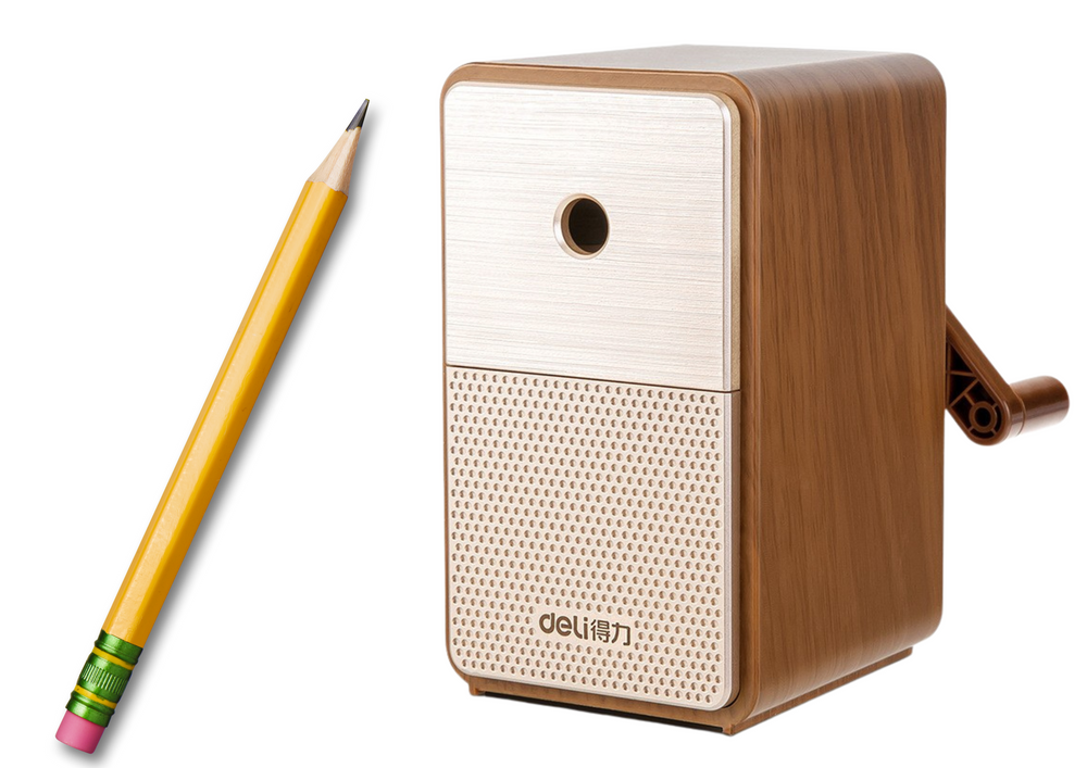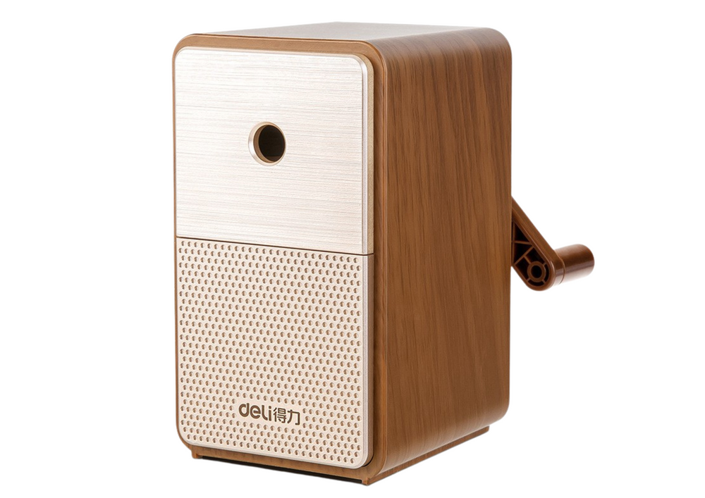 Gebogen slijper met container, mesverstelling bruin. Deze elegante slijper met een ruime container voor de afschilfers is ideaal voor het scherp maken van potloden of kleurpotloden. De verstelbare lengte zorgt ervoor dat je eenvoudig de gewenste punt kan cre�ren. Het gebruik is zeer eenvoudig en het legen van de container gaat zonder moeite. Geniet van nauwkeurig slijpen en het gemak van een schone werkplek.