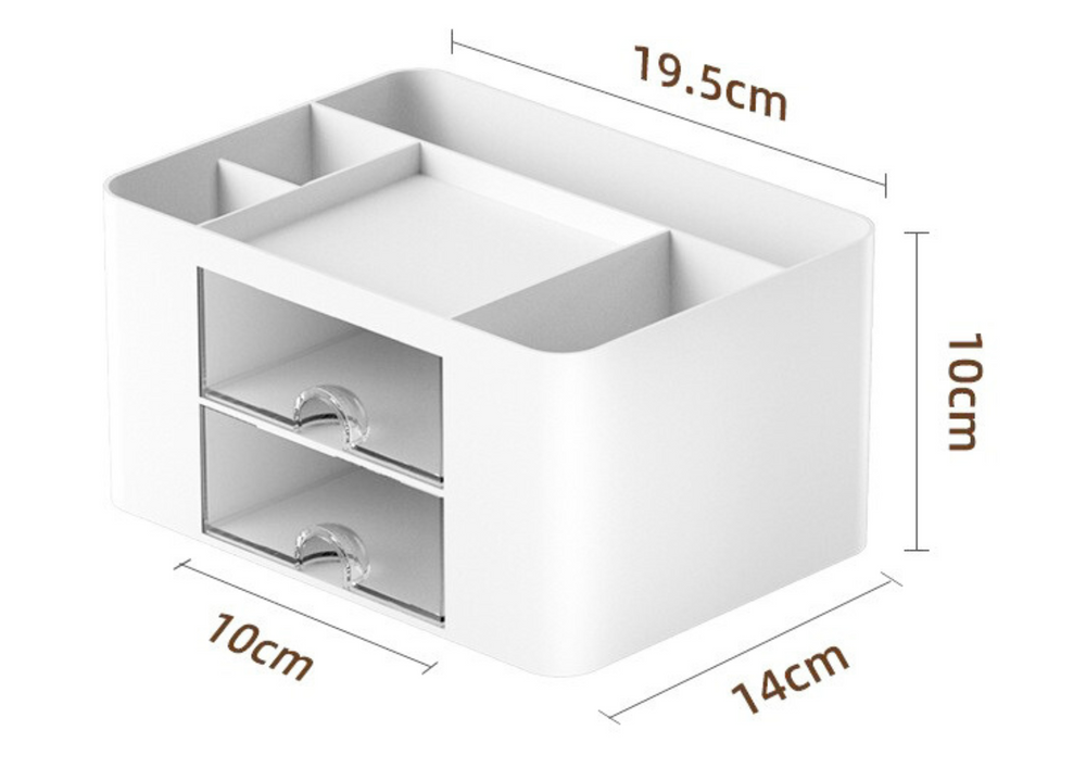 Deze bureau-opbergorganizer in wit is de perfecte oplossing om je werkplek overzichtelijk te houden. Met vijf compartimenten van verschillende groottes en twee handige lades biedt deze organizer volop ruimte voor al je kantoorbenodigdheden. Gemaakt van duurzaam plastic, is hij zowel lichtgewicht als stevig. Organiseer eenvoudig pennen, schriftjes, post-it notes en andere kleine items. Met deze bureau-opbergorganizer cre�er je een gestructureerde werkomgeving die de productiviteit bevordert. Maak je bureau netjes en stijlvol met dit praktische accessoire.