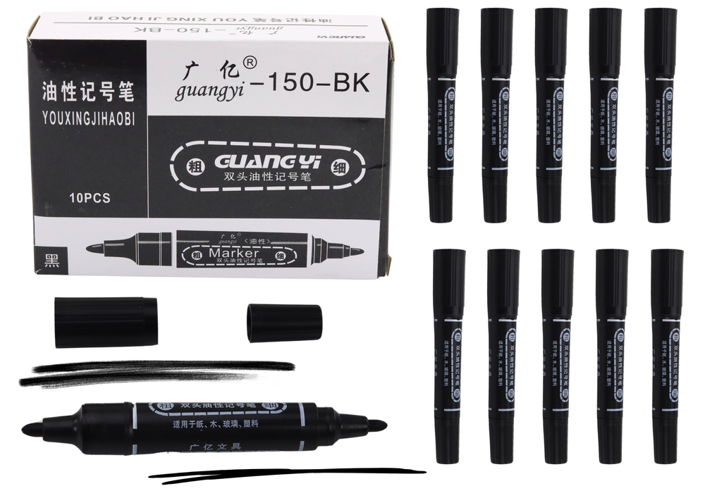 Deze dubbelzijdige waterdichte stiftset bevat 10 zwarte stiften, perfect voor permanente markering op papier, plastic, metaal en glas. De stiften bieden scherpe, waterbestendige afdrukken, waardoor ze ideaal zijn voor zowel creatief gebruik als praktische toepassingen. Dankzij de handige, ronde vorm liggen ze prettig in de hand en zijn ze perfect voor dagelijks gebruik. Voeg een vleugje professionaliteit toe aan al uw projecten met deze veelzijdige stiften.