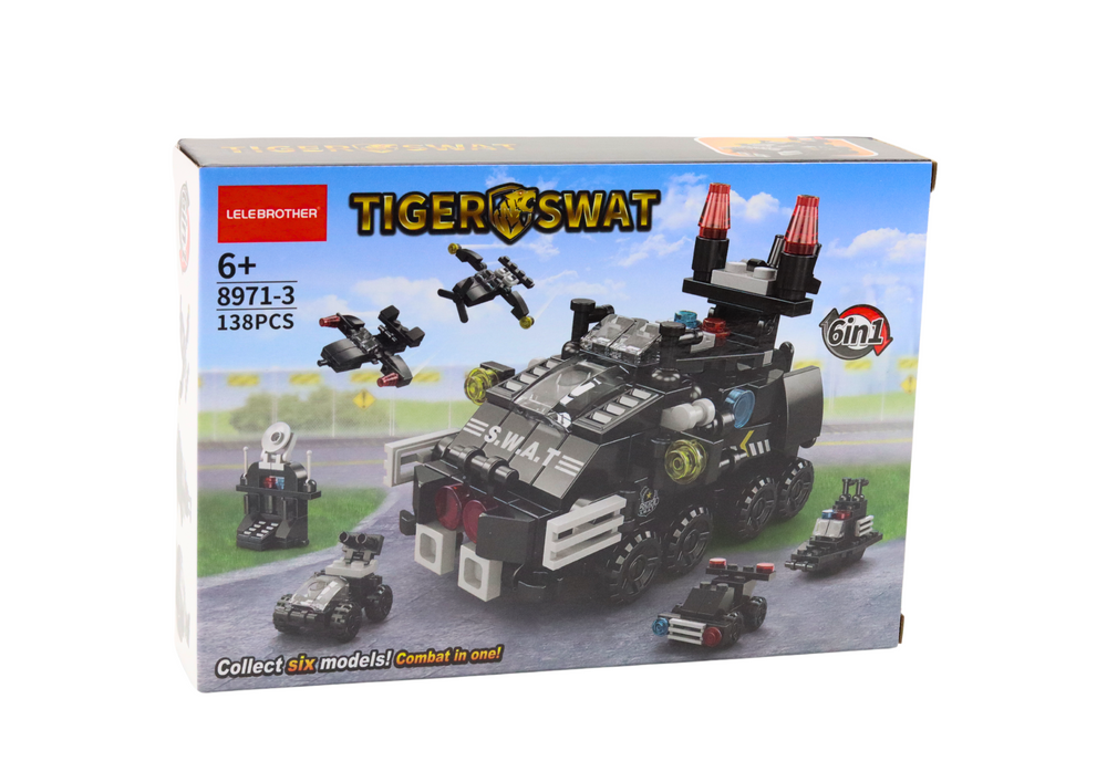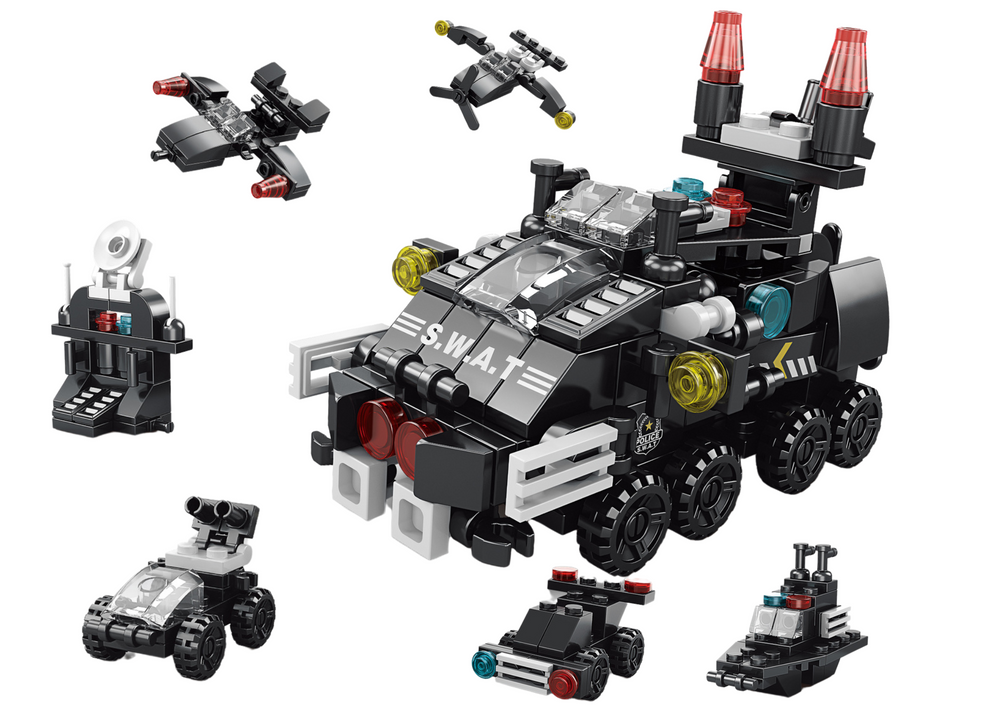 Bouwblokken pantservoertuig 6in1 bouwset voertuigen 138-delig.