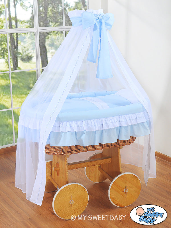 Moses Mand/Rieten laken wieg Deluxe - Bellamy blauw