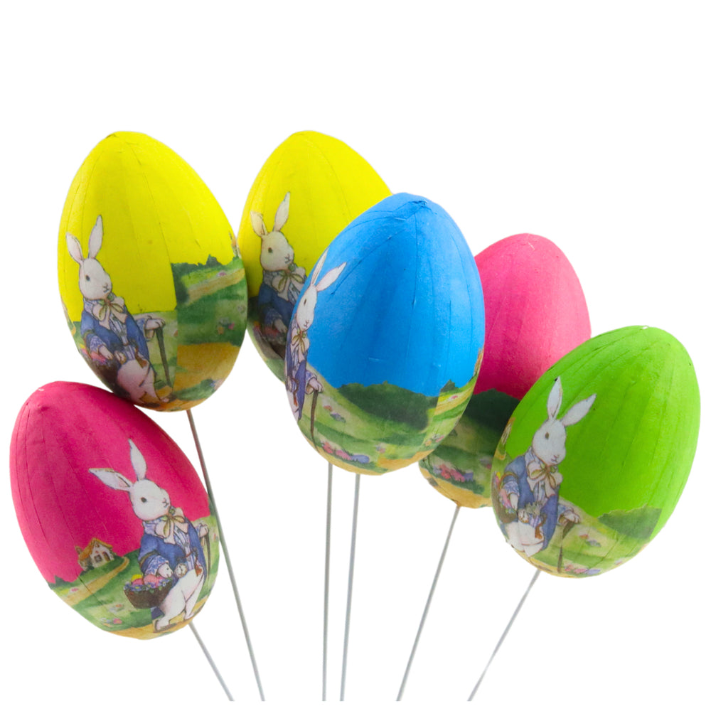 Paaseieren op een draadprikkerkonijn met manddecoratie 6 st