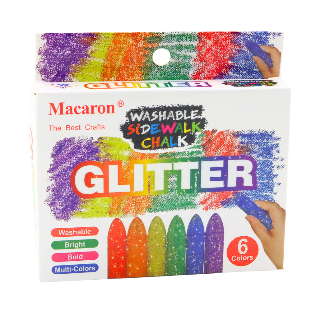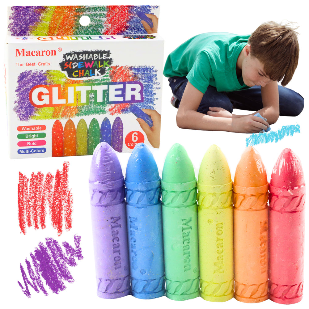 Glitterkleurig schoolbord stoepkrijt set van 6. Deze set bevat 6 glinsterende krijtjes in levendige kleuren: rood, oranje, geel, groen, blauw en paars. Perfect voor het tekenen op stoepen, schoolborden of papier. De krijtjes zijn non-toxisch, veilig voor kinderen en gemakkelijk schoon te maken. Stimuleert creativiteit en ontwikkeling. Maak de wereld een beetje kleurrijker met deze prachtige krijtjes!