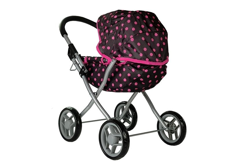 De Poppenwagen Alice in zwart-roze gestippeld is de perfecte metgezel voor elke kleine poppenmoeder. Met een stijlvol en speels ontwerp, biedt deze poppenwagen zowel comfort als gemak. Het stevige frame en de zachte bekleding zorgen voor stabiliteit en bescherming van de pop, terwijl de gestippelde stof een trendy uitstraling geeft. De wagen is lichtgewicht en eenvoudig te duwen, waardoor kinderen er probleemloos mee kunnen spelen. Geschikt voor poppen tot een bepaalde grootte, stimuleert deze poppenwagen creatief spel en draagt bij aan de ontwikkeling van sociale vaardigheden. Laat je kleintje de wereld verkennen met de Poppenwagen Alice, waar plezier en fantasie samenkomen.