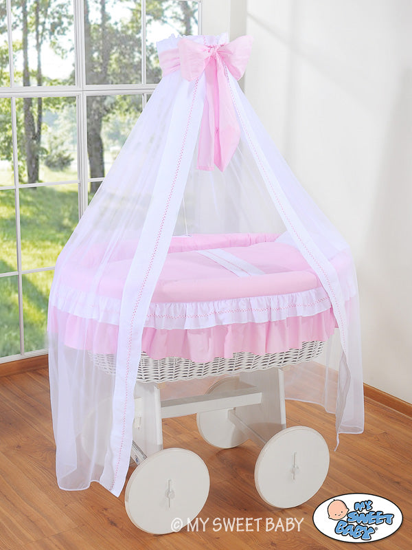 Moses Mand/Rieten laken wieg Deluxe - Bellamy roze