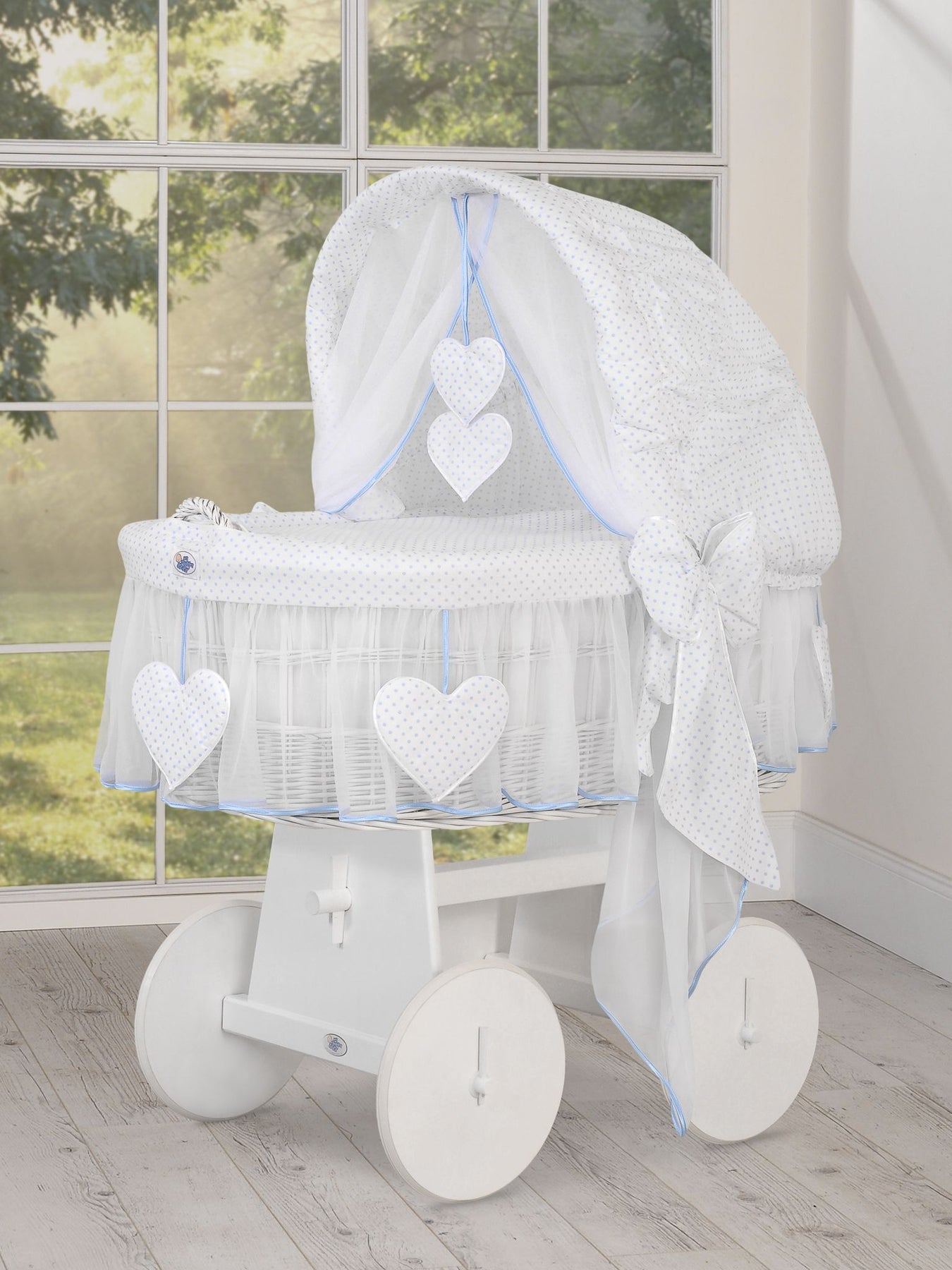 Een prachtige mand. De grootste wieg op de markt. Een witte kleur van riet en hout.
