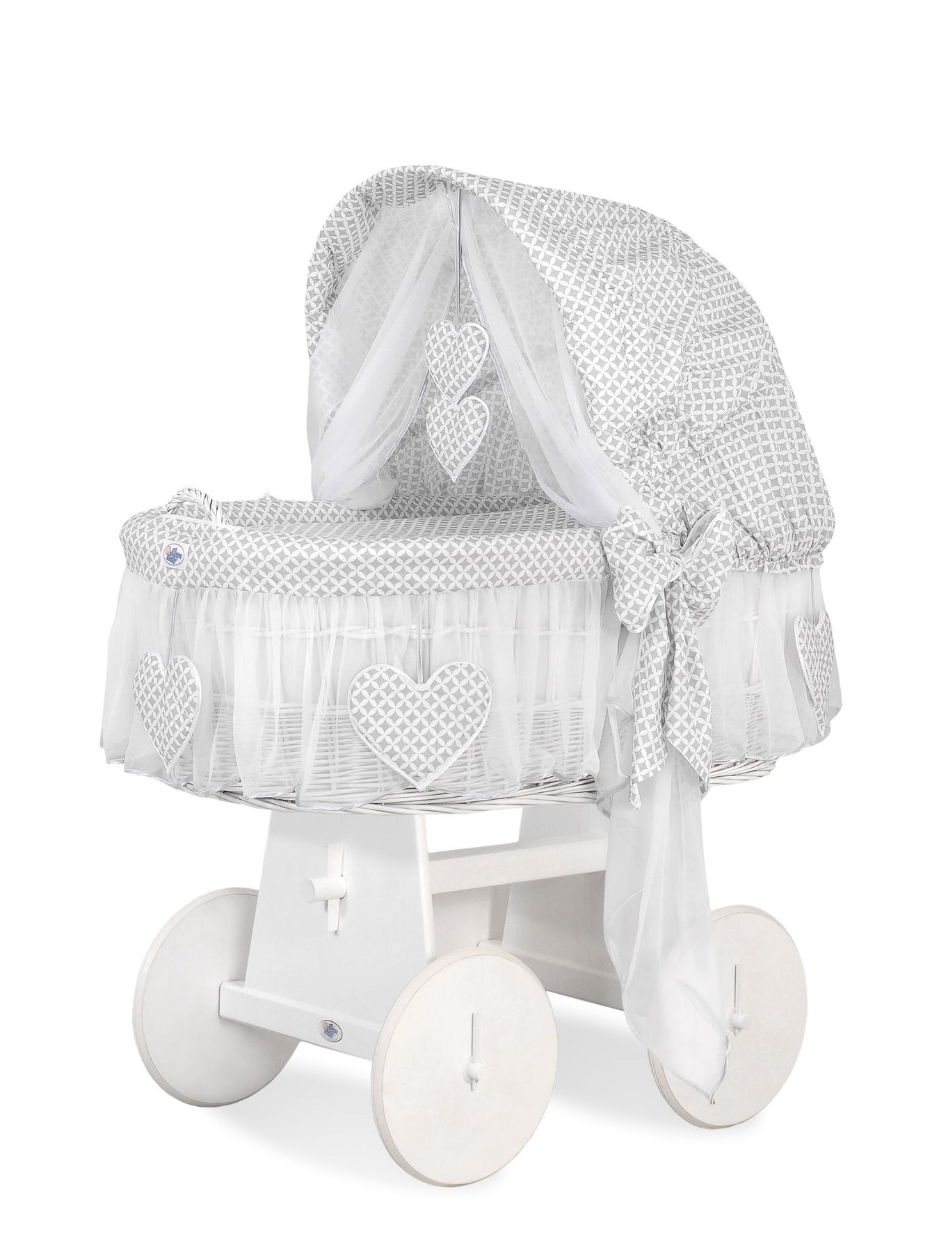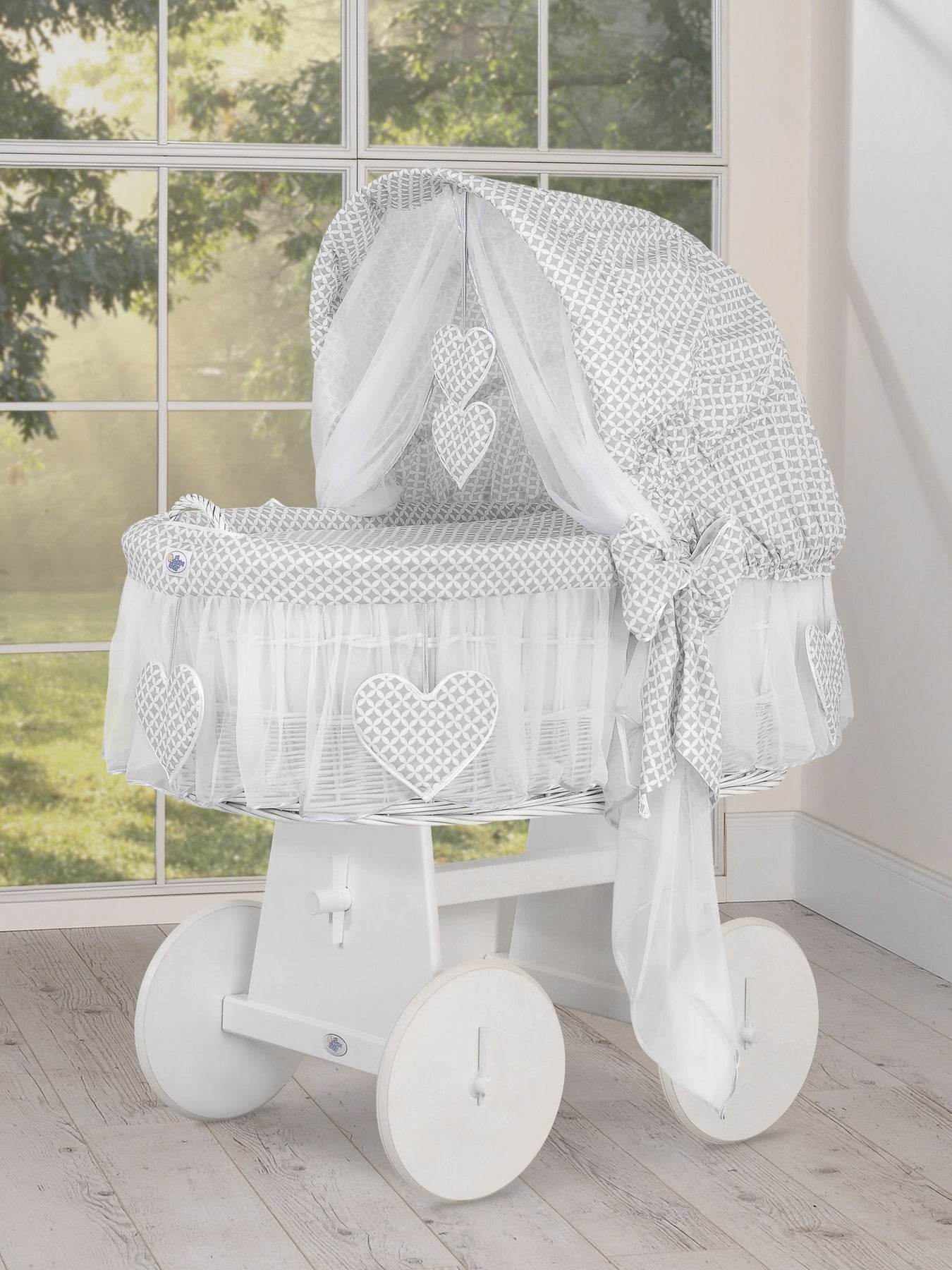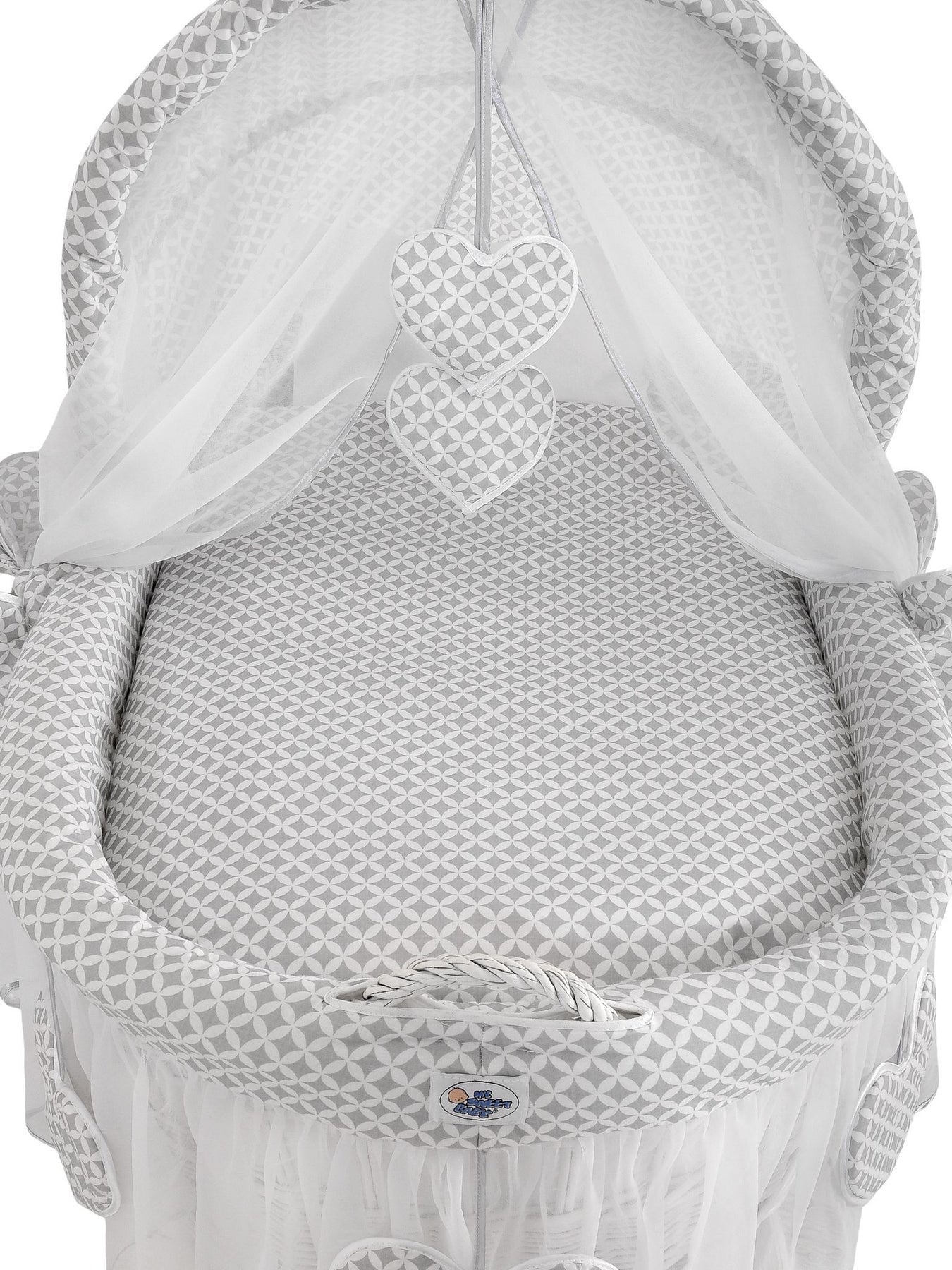 Moses mand/rieten wieg met capuchon - Amelie rozet grijs