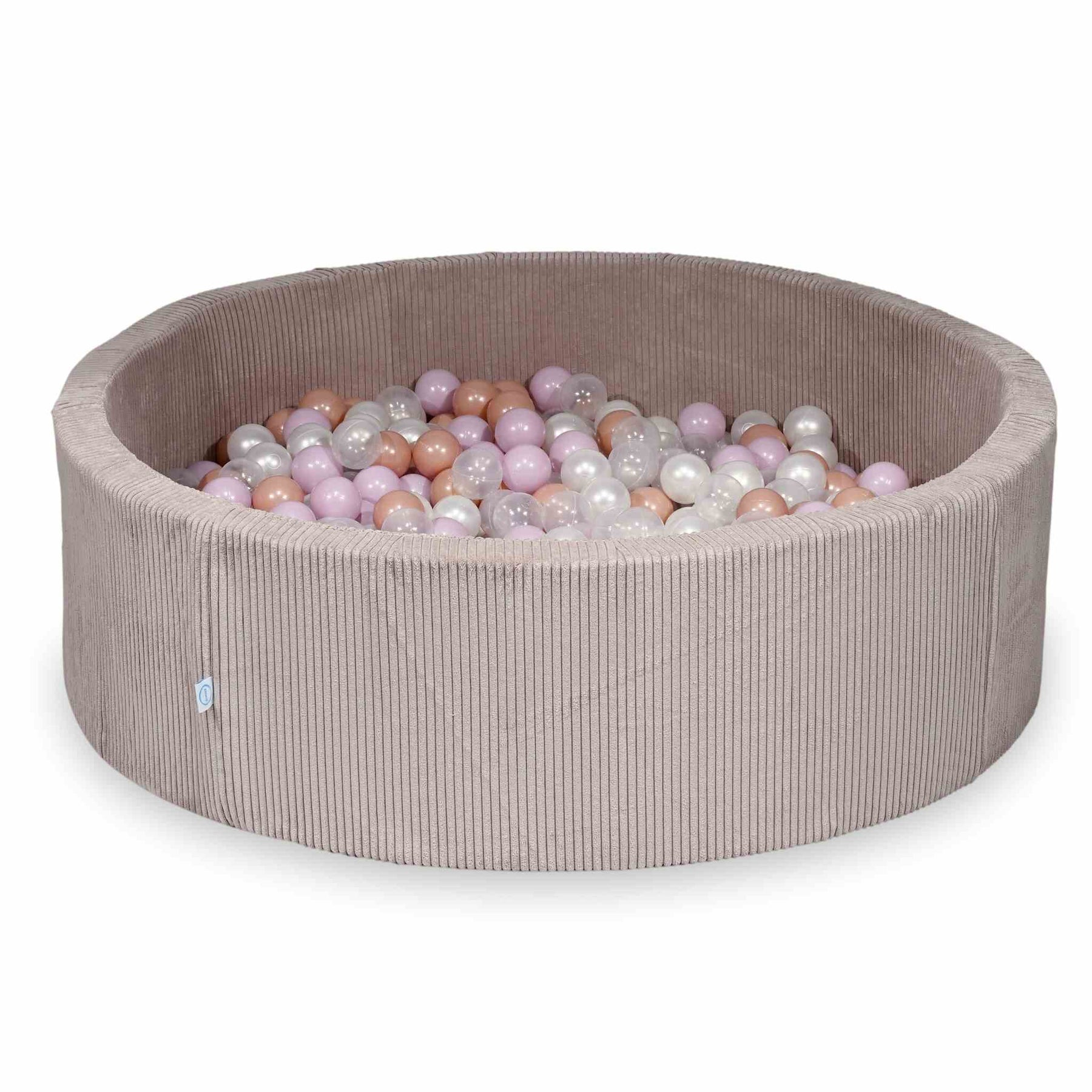 Een stijlvolle, zachte ballenbak van ribfluweel — perfect voor urenlang speelplezier en het stimuleren van motoriek en zintuigen. Dankzij de stevige schuimrand en afneembare hoes is de ballenbak zowel veilig als praktisch in gebruik.