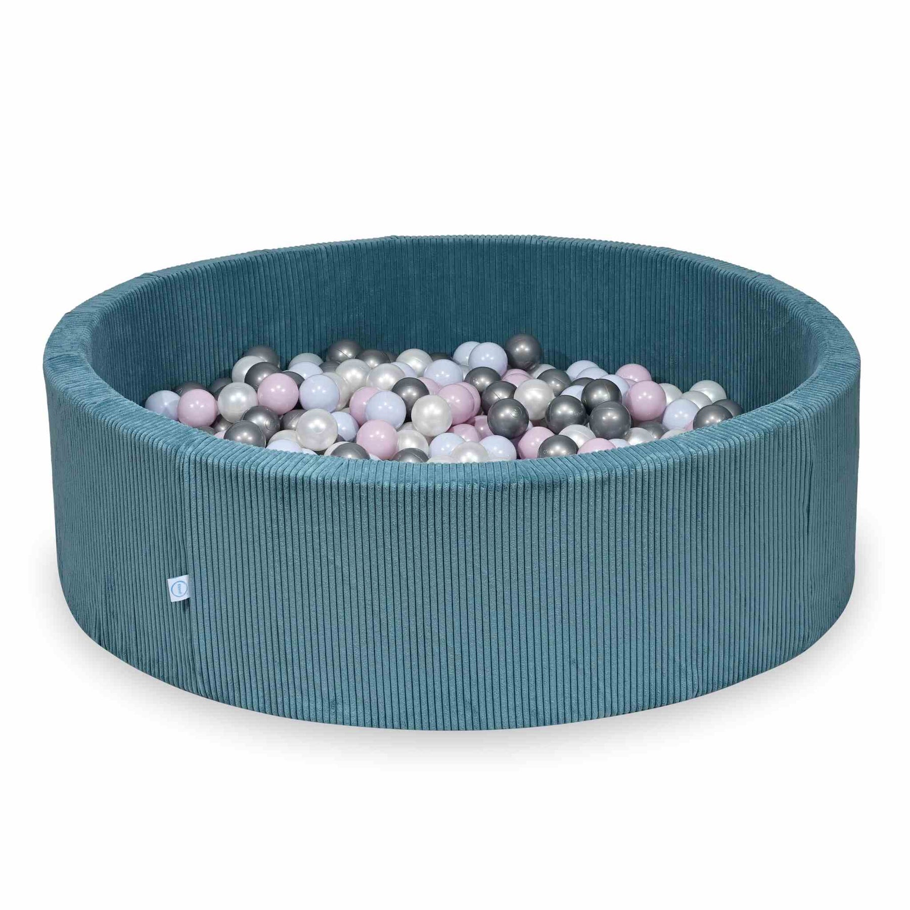 Een stijlvolle, zachte ballenbak van ribfluweel — perfect voor urenlang speelplezier en het stimuleren van motoriek en zintuigen. Dankzij de stevige schuimrand en afneembare hoes is de ballenbak zowel veilig als praktisch in gebruik.
