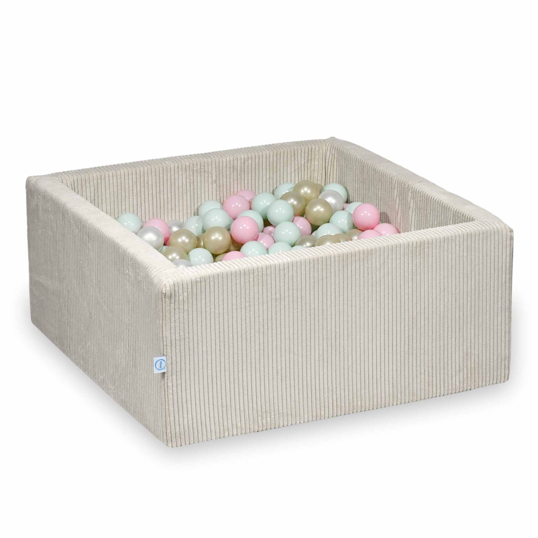 Een stijlvolle, zachte ballenbak van ribfluweel — perfect voor urenlang speelplezier en het stimuleren van motoriek en zintuigen. Dankzij de stevige schuimrand en afneembare hoes is de ballenbak zowel veilig als praktisch in gebruik.