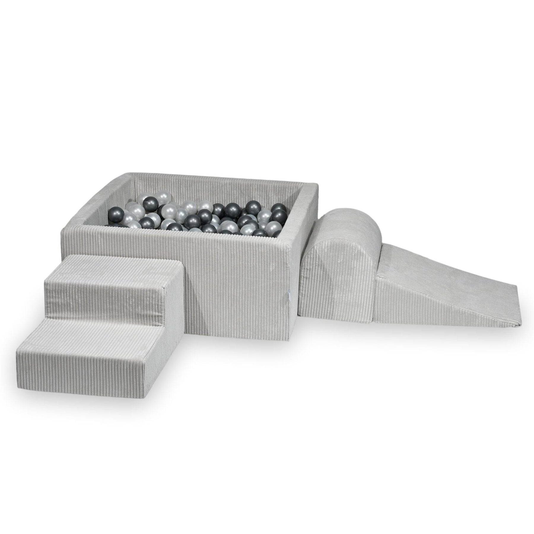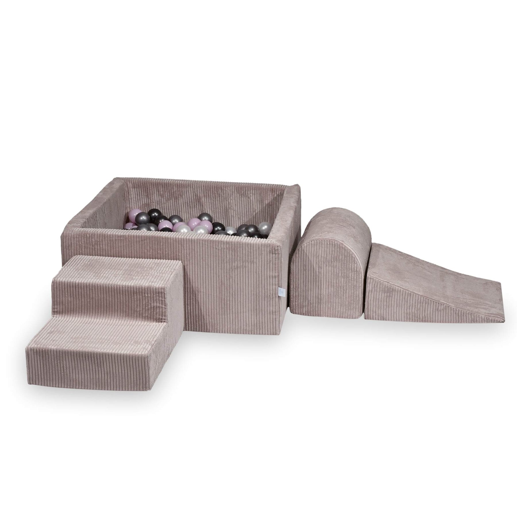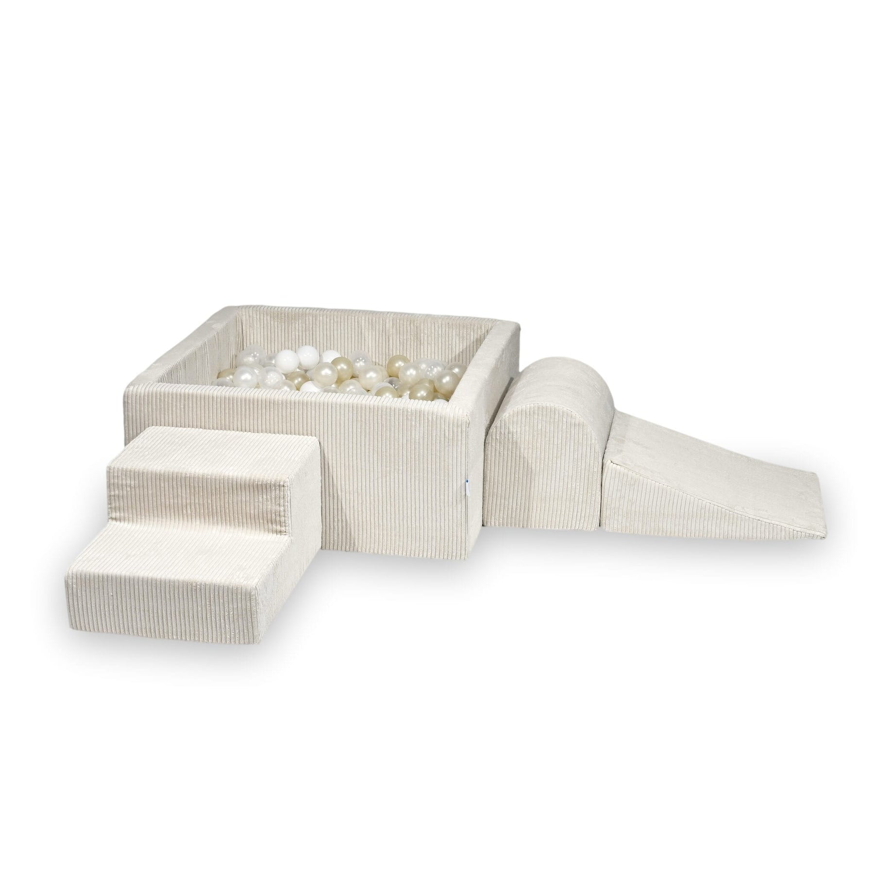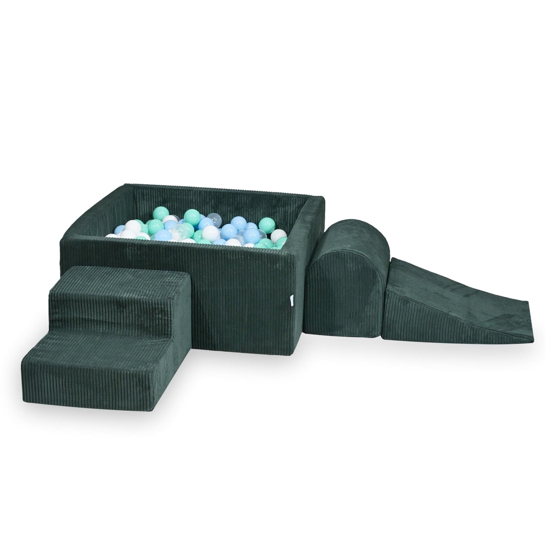 Mimii: Schuimspeelset with square pool 90x90x40 Corduroy Groen + 400 balls transparent, pearl, light mint, light gold