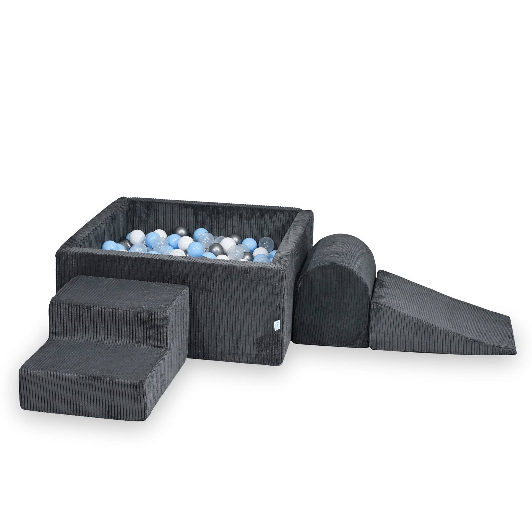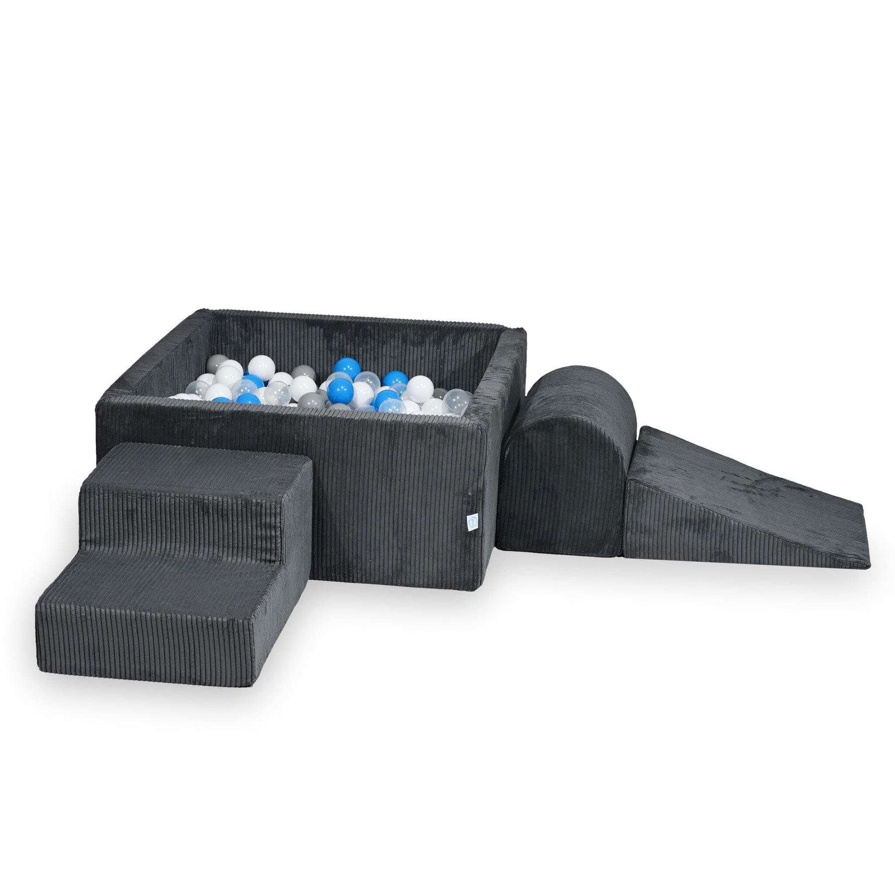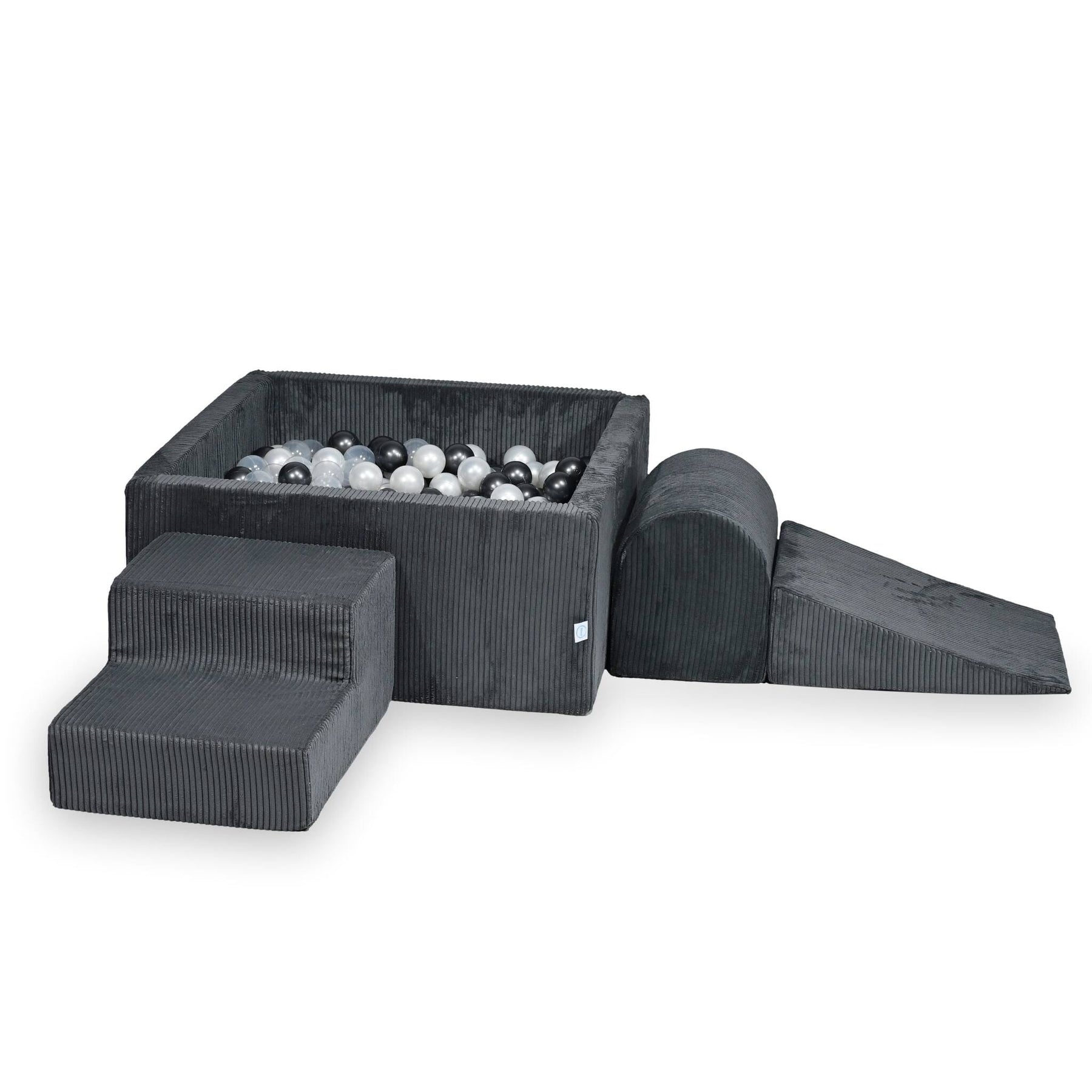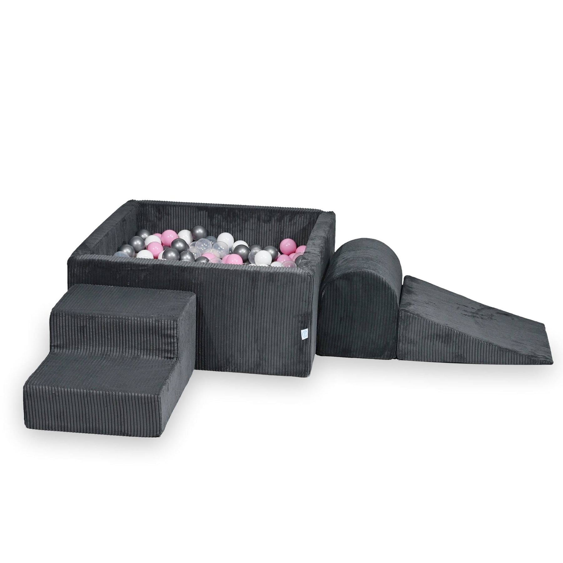 Mimii: Schuimspeelset with square pool 90x90x40 Corduroy Groen + 400 balls transparent, pearl, light mint, light gold