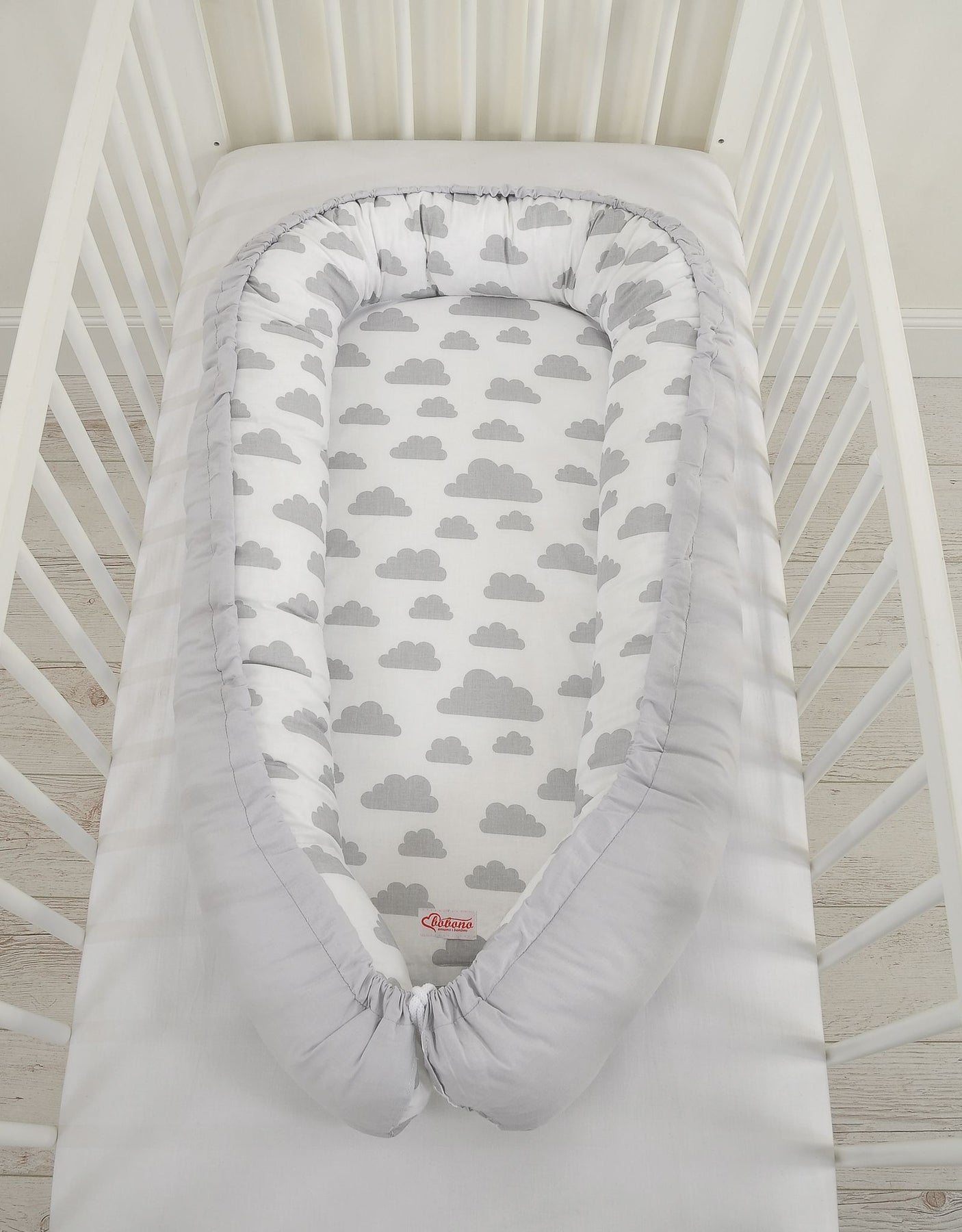 De babycocon is een geweldige oplossing voor de eerste maanden van het babyleven. De cocon is een slaapnest, kleiner en gezelliger dan een ledikantje, de baby voelt zich er veilig in zoals in de buik van mama. De cocon heeft tot doel de ruimte rondom de baby te beperken, zodat hij geleidelijk van de embryonale positie naar een rechtopstaande positie kan gaan. Als de baby na de geboorte meteen in het bedje slaapt, kan hij zich ongemakkelijk voelen omdat hij plotseling in te veel ruimte komt. De zachte en hoge randen van de cocon die de baby omhult, beschermen de baby en dempen harde geluiden, waardoor een goede nachtrust wordt gegarandeerd.