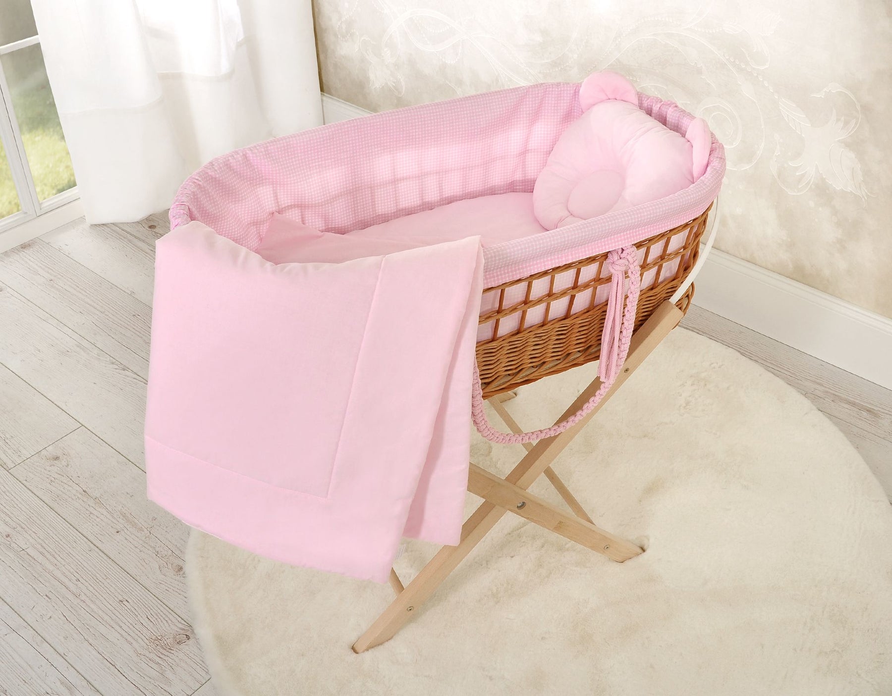 Moses rieten mand in BOHO-stijl met katoenen voering - roze geruit