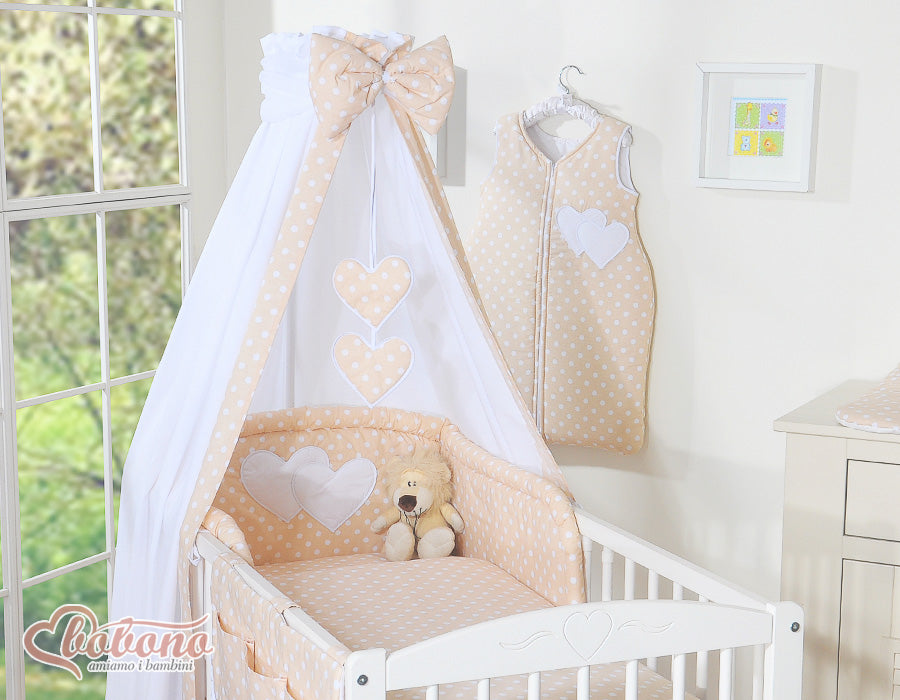 Luifel gemaakt van stof - Hangende harten witte stippen op beige