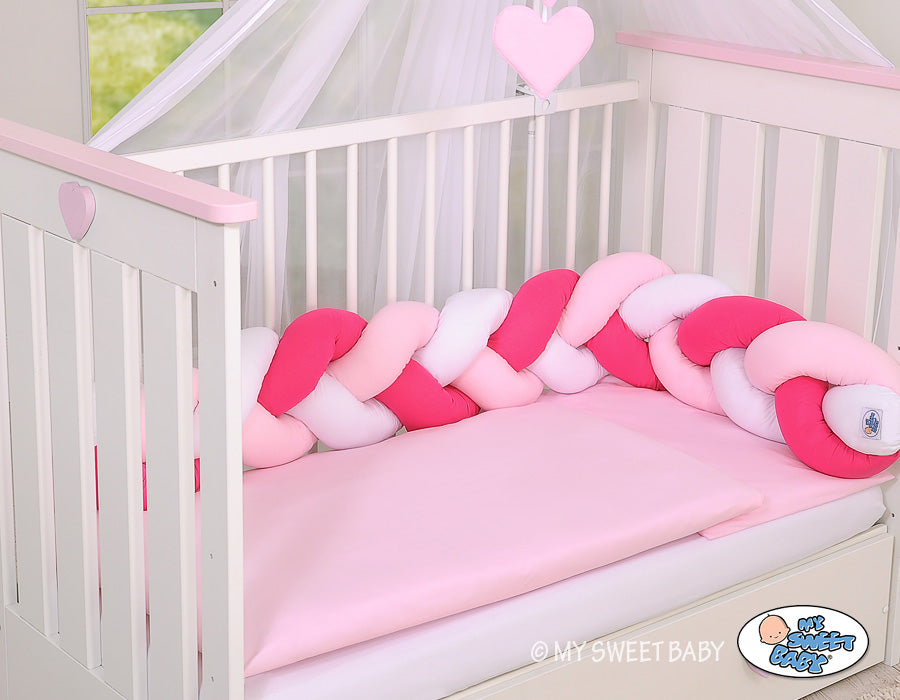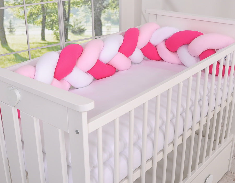 Mooie, zeer zachte gevlochten ledikantbumper van 100% katoen. Kan aan de spijlen worden bevestigd.