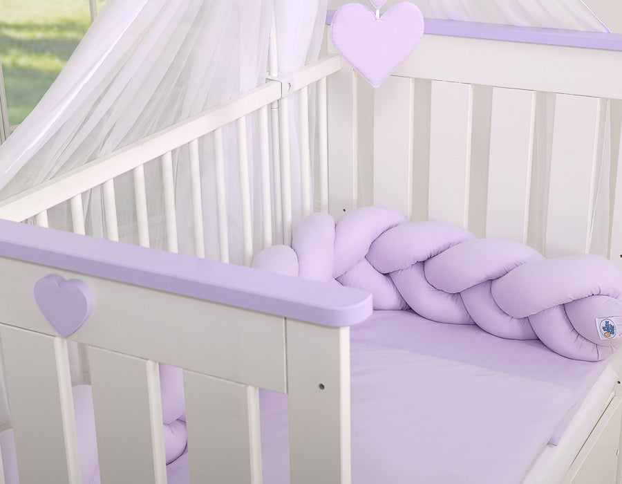 De bumper beschermt de handen en voeten van uw baby tegen bekneld raken tussen de spindels en beschermt het hoofd en lichaam van de baby tegen stoten tegen de wanden van het bed. Met de meegeleverde katoenen strikjes kan het nest aan de spijlen worden bevestigd.