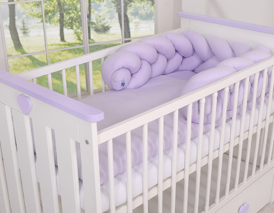 Mooie, zeer zachte gevlochten ledikantbumper van 100% katoen. Kan aan de spijlen worden bevestigd.