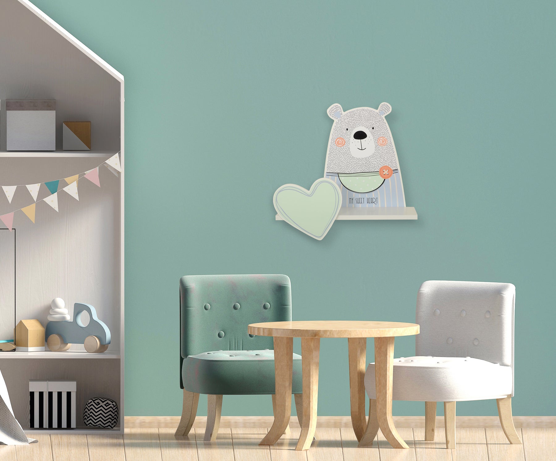 Een prachtige plank die perfect past in elke kinderkamer. Plank nodig om boeken of favoriete poppen en speelgoed te ordenen. Plank geheel gemaakt van hoogwaardig MDF materiaal met een dikte van 16mm. Bedekt met meerdere lagen gecertificeerde ecologische verf op waterbasis (speelgoedveiligheid). Bestand tegen chips of krassen. Het grote decoratieve deel van de plank bestaat uit kleurrijke decoratieve afbeeldingen. Aan de voorkant een extra element, eveneens versierd met kleurrijke afbeeldingen, die naast decoratie ook boeken of ander speelgoed beschermen.